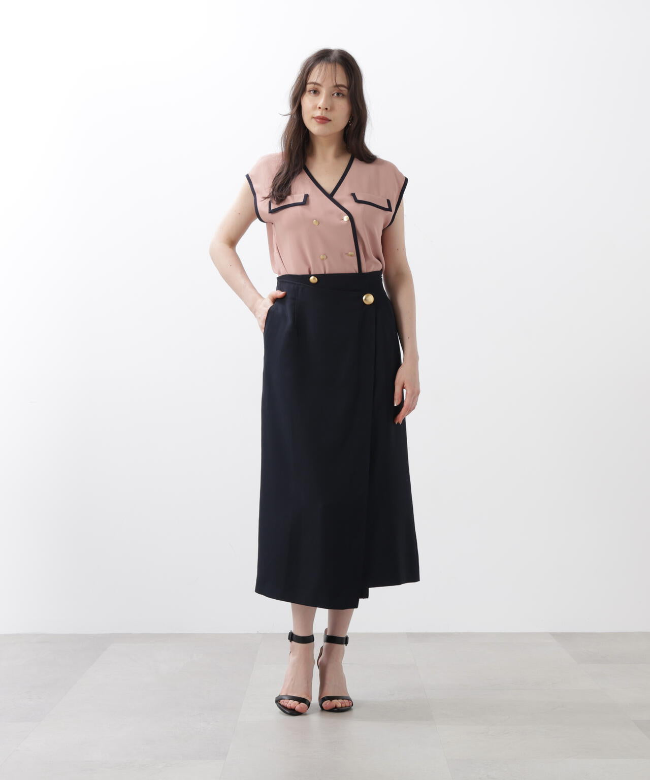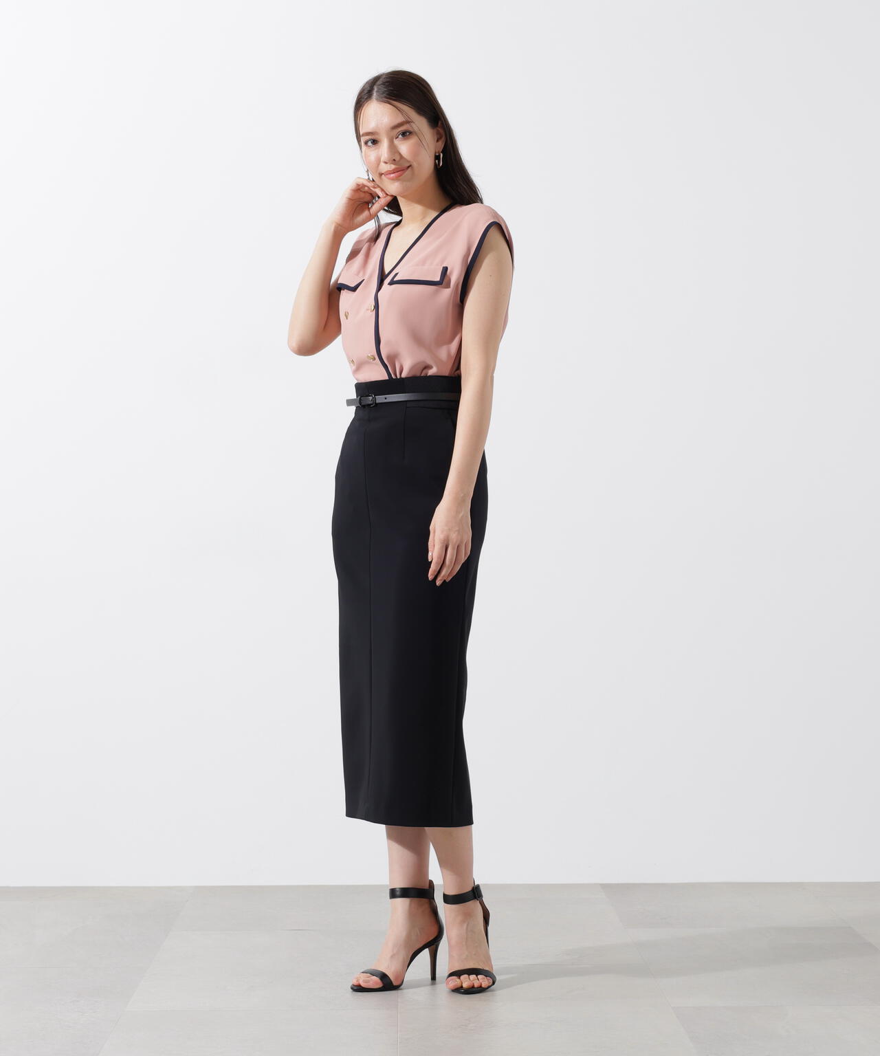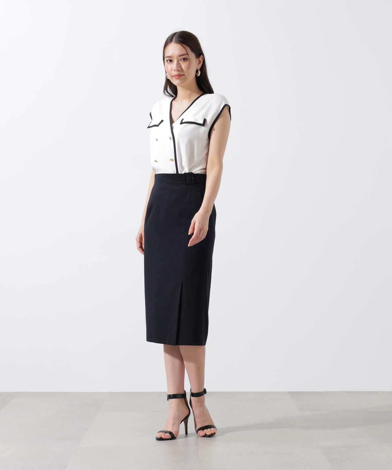 ややゆったりとしたシルエットが、こなれ感を演出します。スカートはもちろん、前後差のある着丈を活かしてパンツに後ろ裾をアウトした、リラックス感のあるスタイリングもおすすめです。