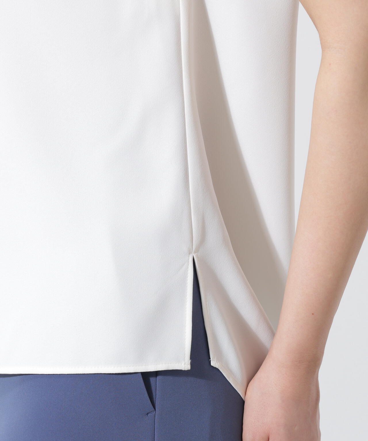 適度な膨らみ感とドライな風合いが特徴で、接触冷感性があり、シワになりにくいイージーケア素材です。