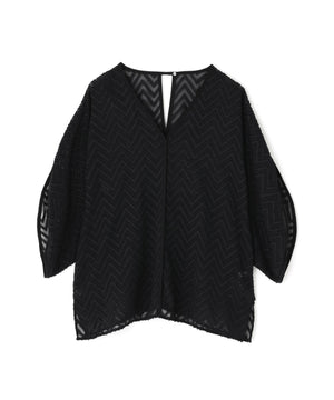ヘリンボーンのジャカードが目を惹く、エレガントなブラウス。