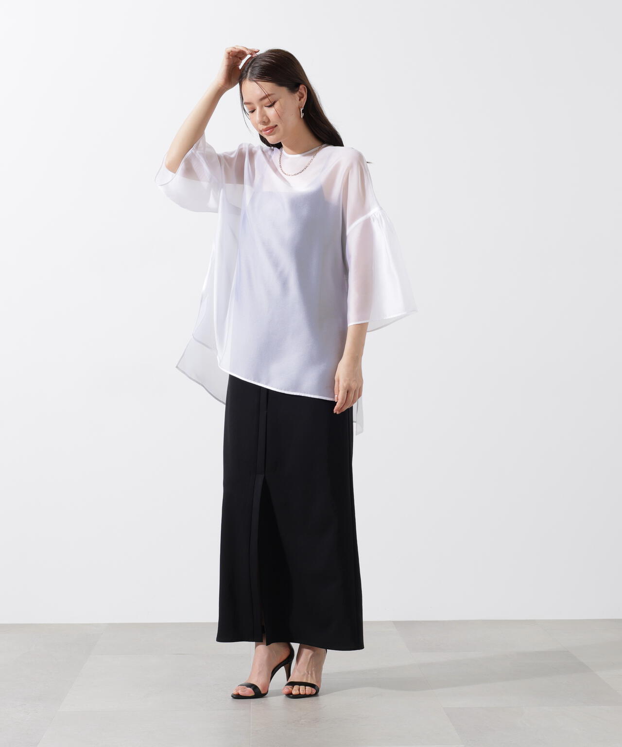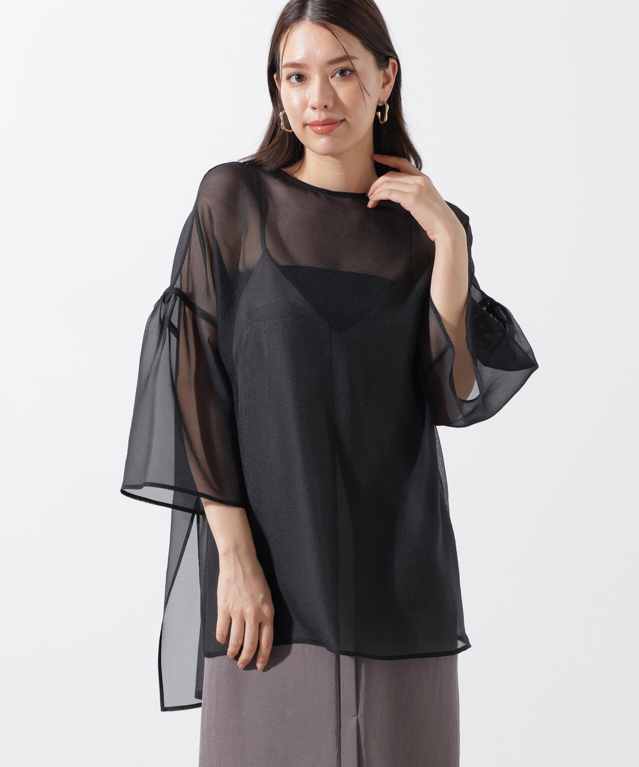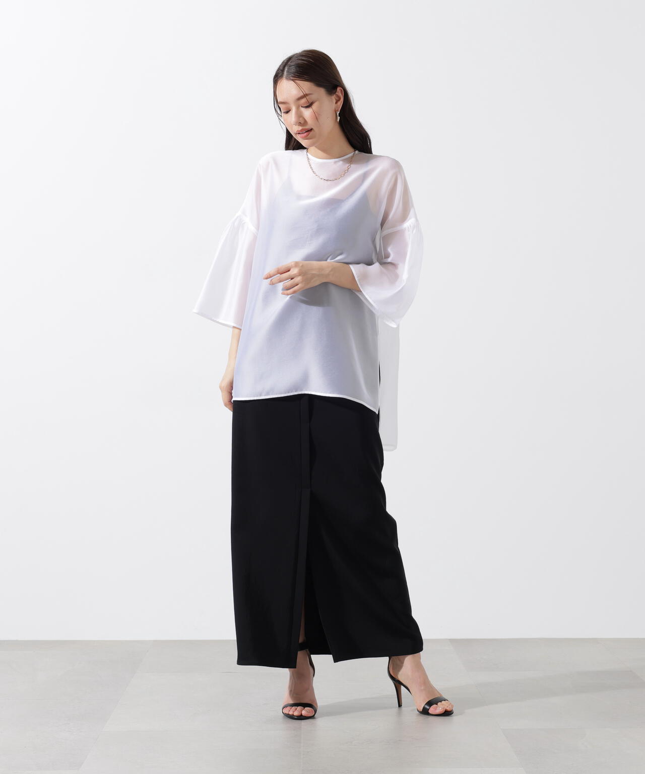 ゆったりとしたシルエットでリラックス感がありながらも、袖のボリュームがこなれた印象を与えるブラウス。