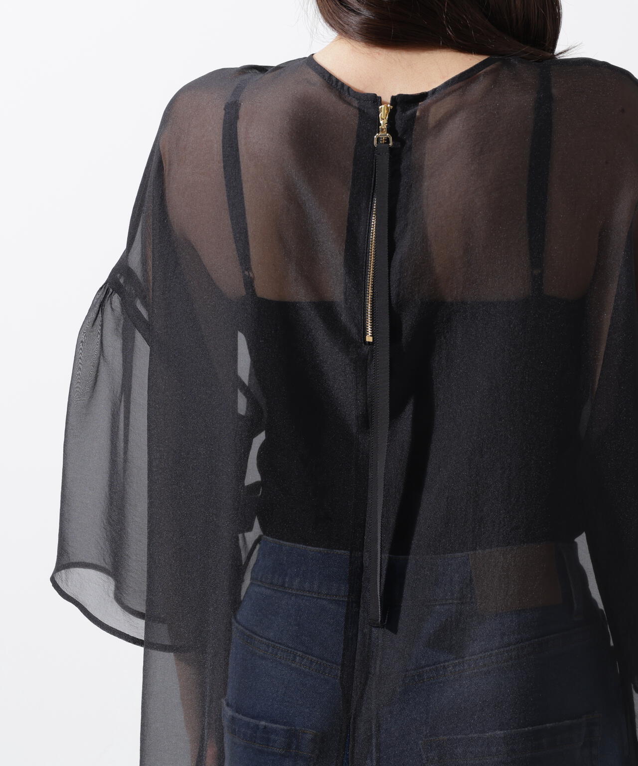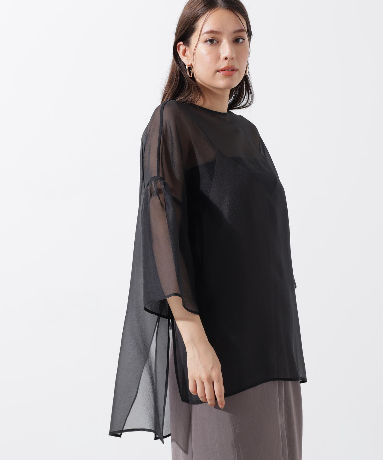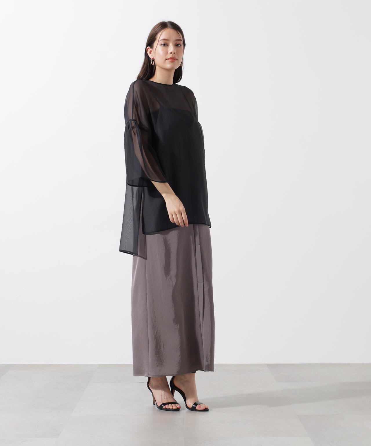 ゆったりとしたシルエットでリラックス感がありながらも、袖のボリュームがこなれた印象を与えるブラウス。