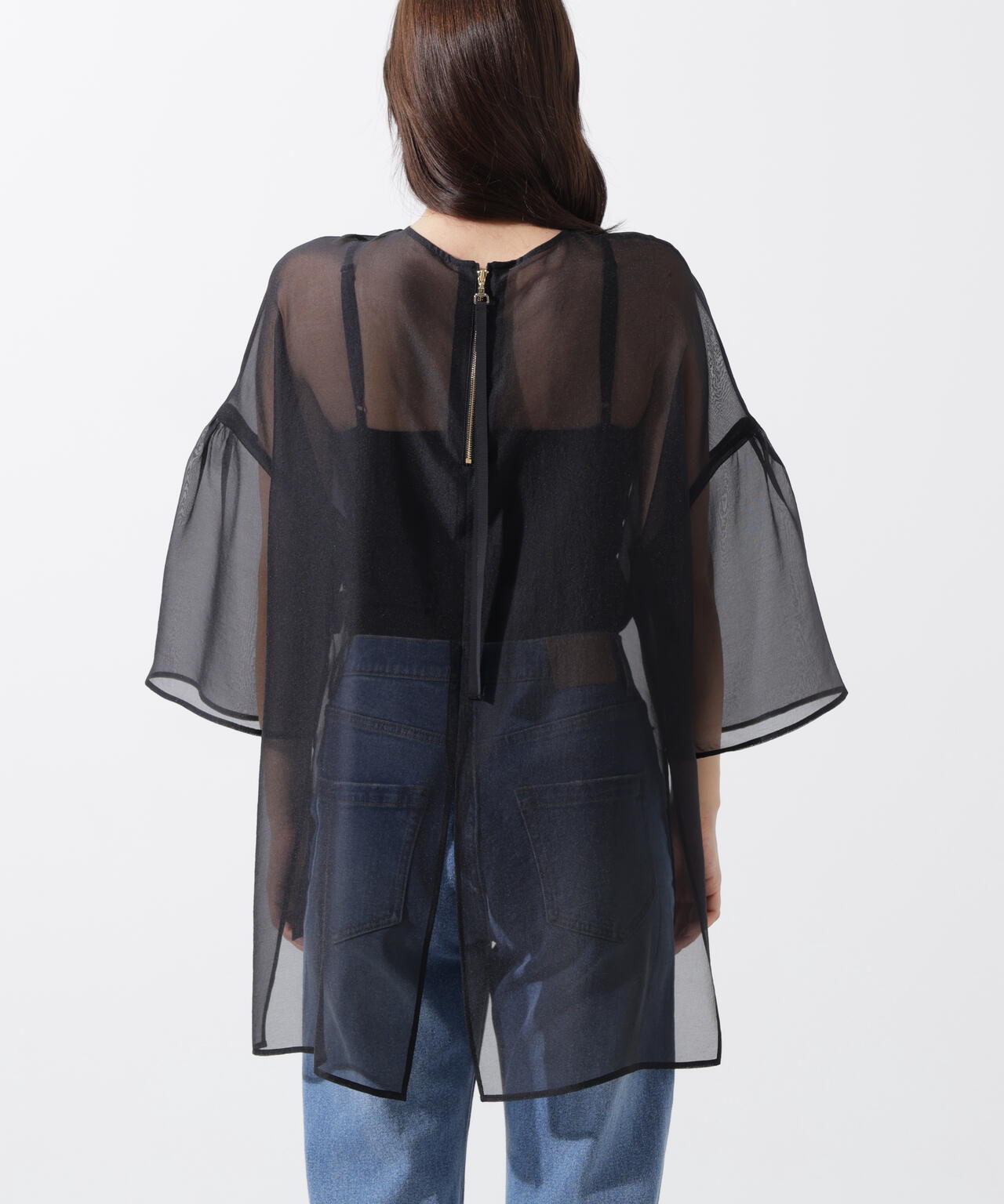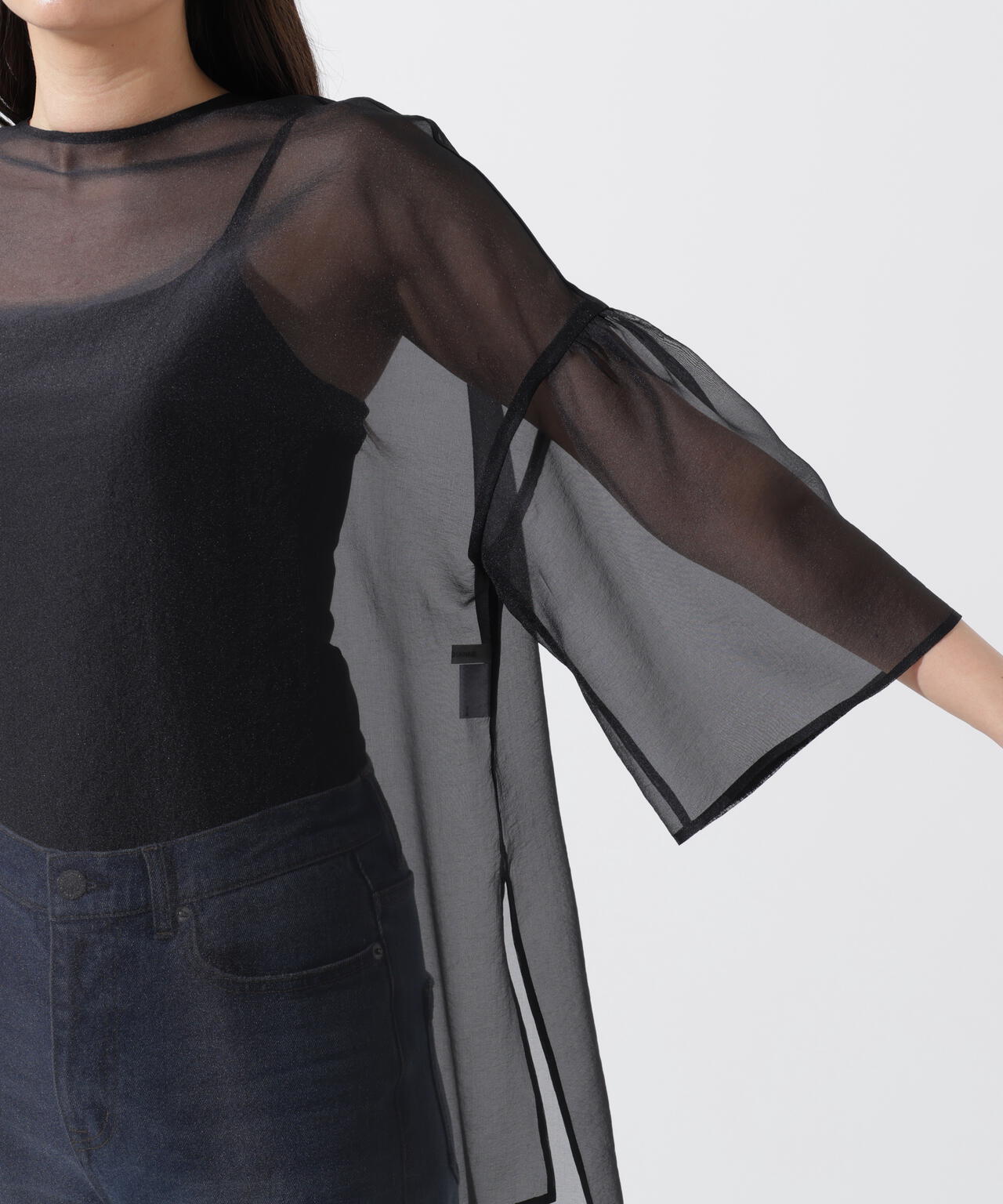細デニールの分繊糸を使用し、ハリ感と柔らかさを兼ね備えたオーガンジー素材。
