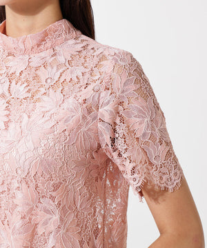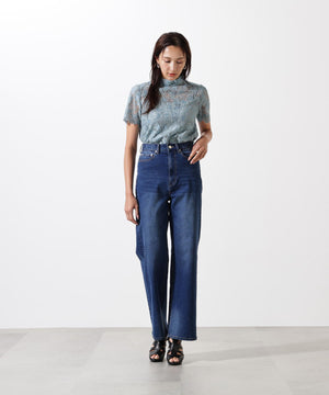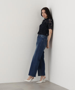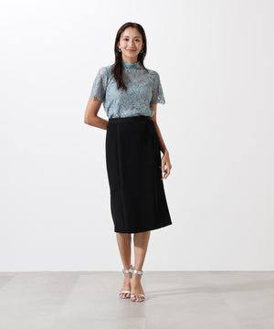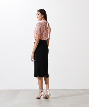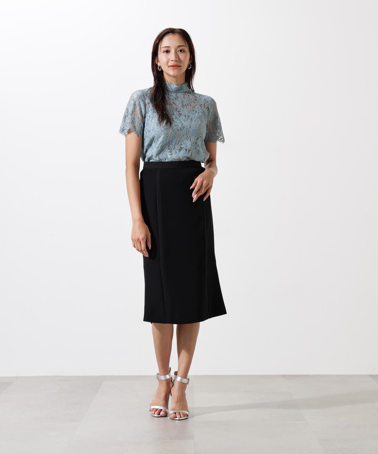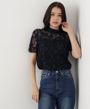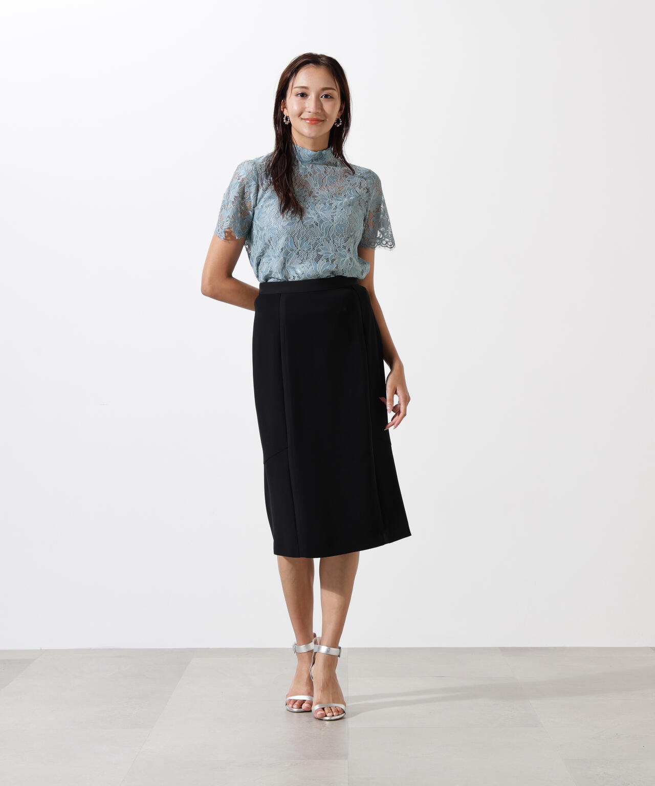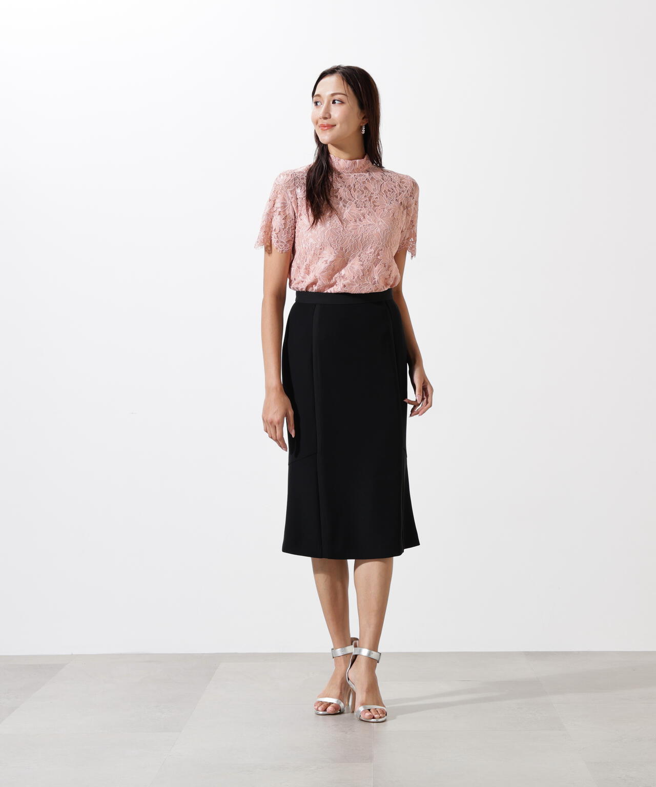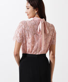スタンドカラーで上品な雰囲気の総レースブラウス。繊細で華やかさのあるレースで仕立てられたスタンドカラーレースブラウス。見頃の裏にシフォンを重ねることで上品な透け感を作りあげています。デコルテから袖にかけての透け感が大人っぽい印象を与えます。後ろは同色のサテンリボンと前立てがポイントで、バックスタイルまで抜かりなく、どの角度からも目を惹きます。