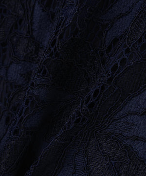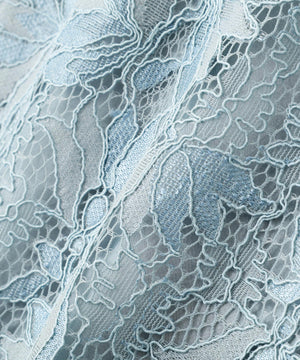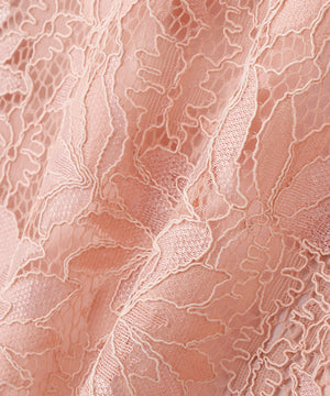 格子部分をコード糸、柄部分を細さの違う糸で編み上げたレース生地。格子越しに見える花柄が珍しいデザインのレースです。光沢のある糸とマットな糸を使い花びらに陰影を作った立体感のあるレースです。