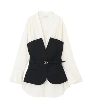 シャツ:アセテート 60% ポリエステル 40%、コルセット:(表生地)毛 100%(裏生地)キュプラ 100%