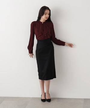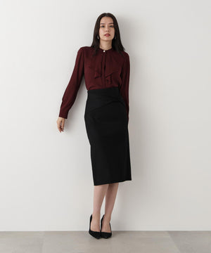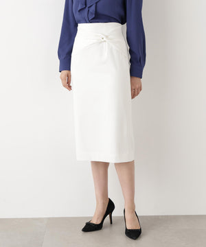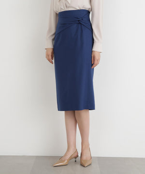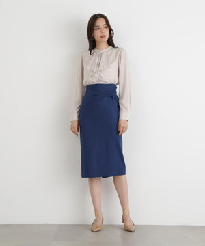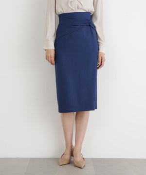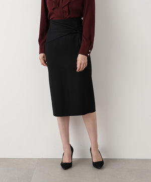 身体のラインに程よくフィットした女性らしい美シルエットにサイドにあしらったクロスタックで華やかさと上品さを印象付けたデザイン。