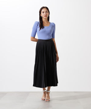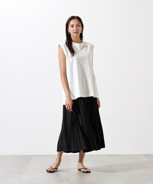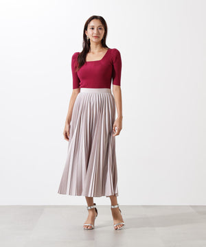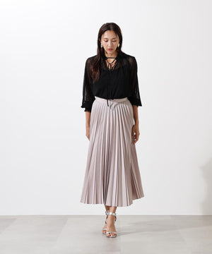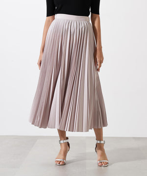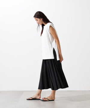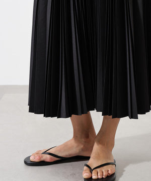細かい幅で、本数を贅沢に取り丁寧に折り上げた、技術が生んだプリーツスカートです。着るだけでコーディネートが華やかになるおすすめのアイテム。余計な装飾を無くし、光沢の控えめな生地と美しいプリーツ、フレア感の引き立つシンプルながら軽やかな動きの出るデザインにこだわりました。動いたときに綺麗にプリーツが広がるので一着で存在感を放ってくれる主役級のアイテムです。