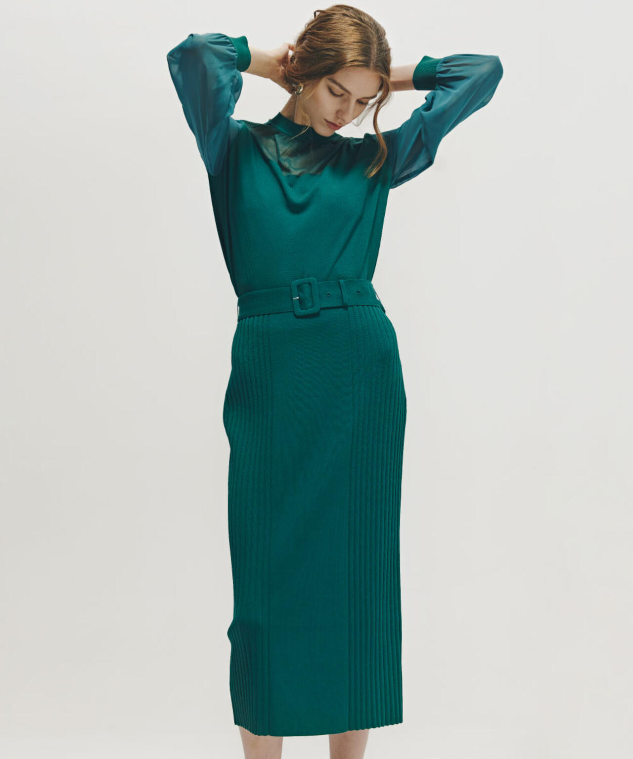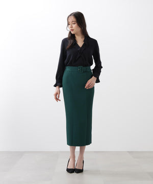 履き心地の良さと美しいシルエットのニットタイトスカート。女性らしいボディラインを演出する、裾がややフレアになったこだわりのシルエット。程よい光沢感がカジュアル見えを抑え、デイリーからお出かけまでマルチシーンで活躍。しっかりとした生地感が脚のラインを拾いにくく、安心感のある着心地と脇のリブが細見え効果がうれしいポイント。