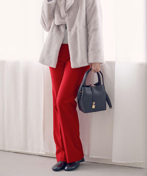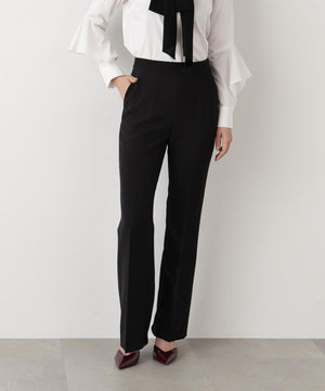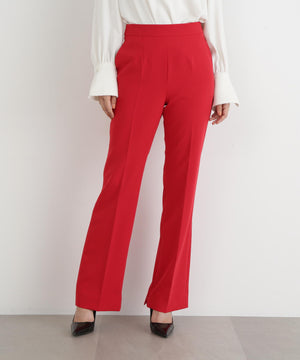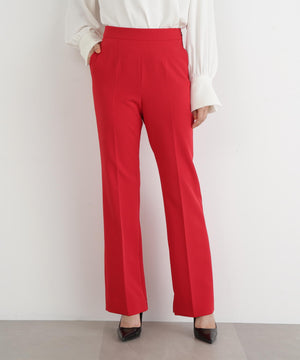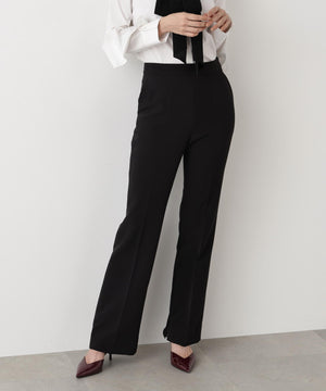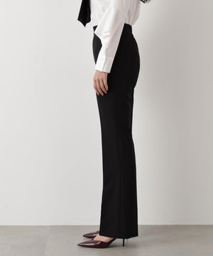 すっきりとしたシルエットを叶えるダブルクロス素材のフレアパンツ。