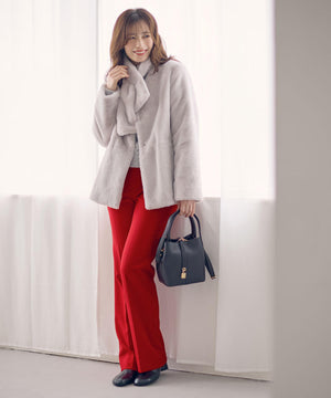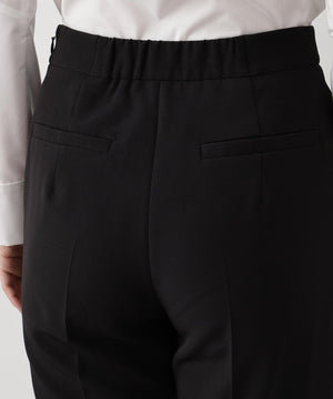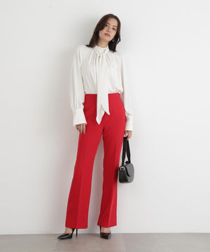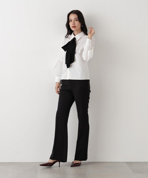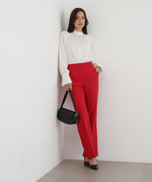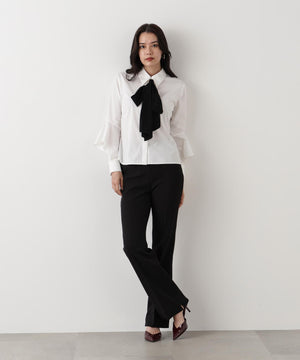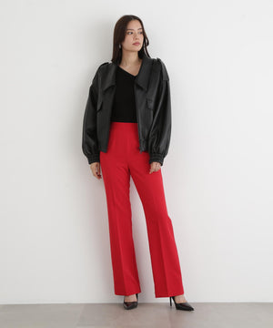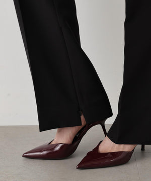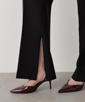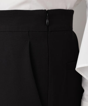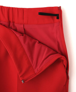 ウエストまわりをコンパクトに仕上げ、脚のラインを美しく見せるシルエットが魅力です。裾内側に配したファスナーを開けるとスリットのようなフレアシルエットが生まれ、スタイリングにシャープな表情をプラス。