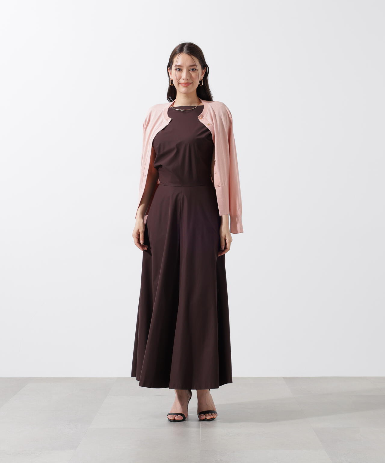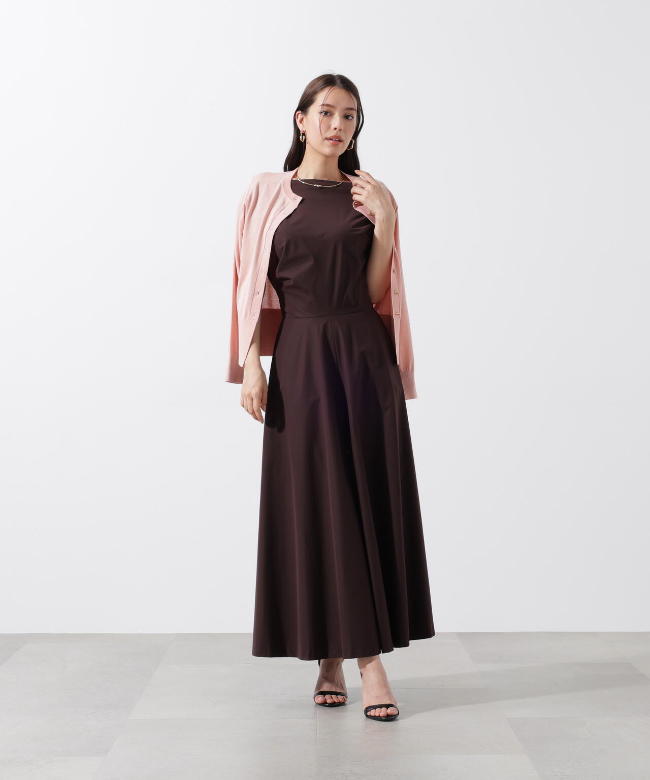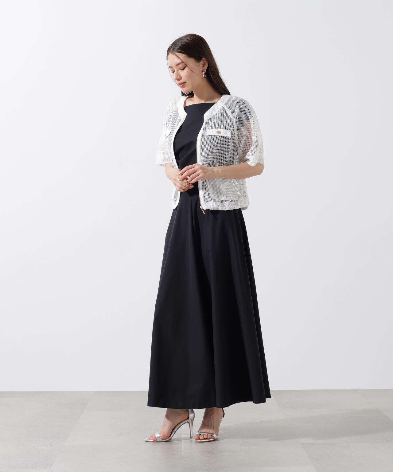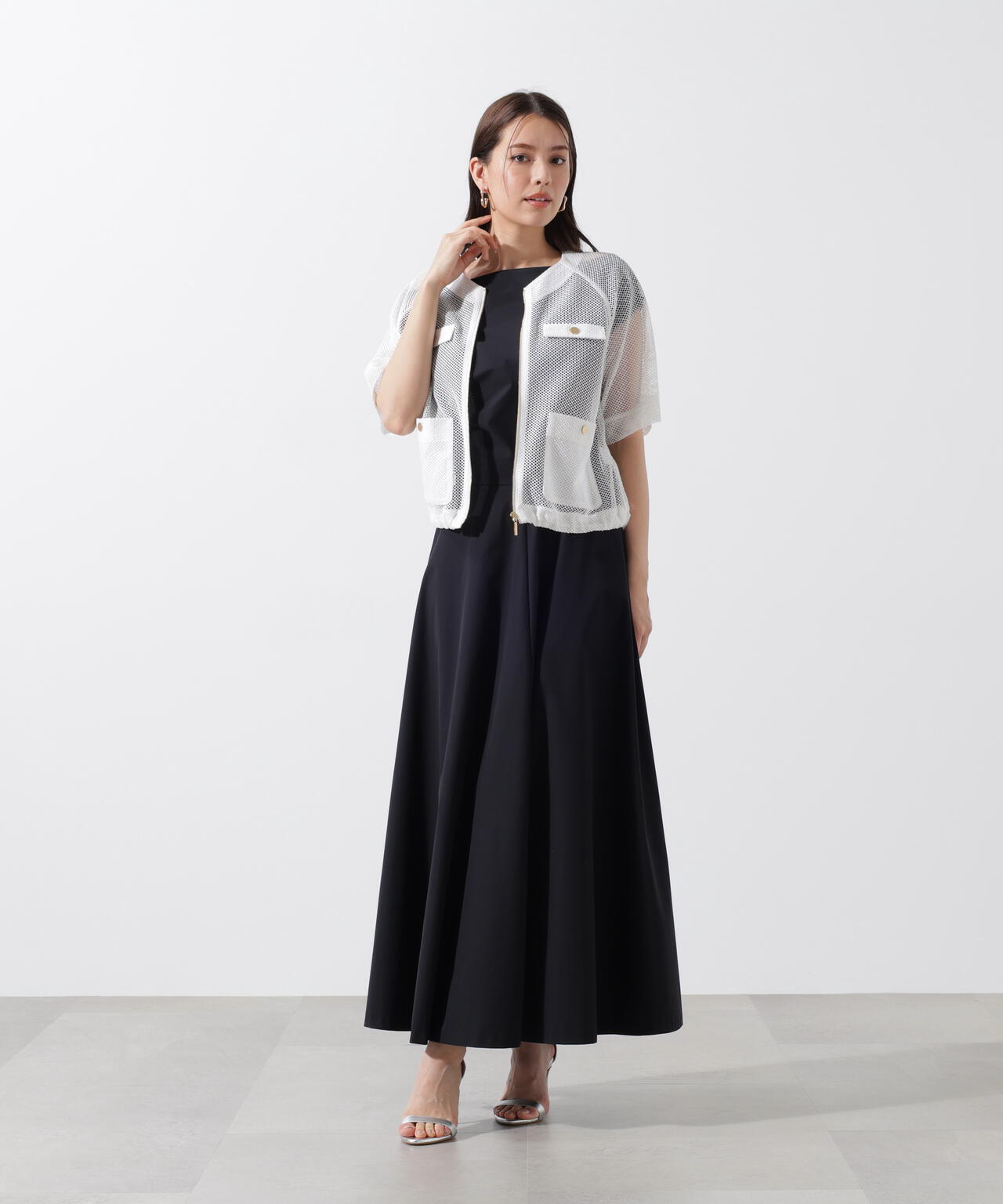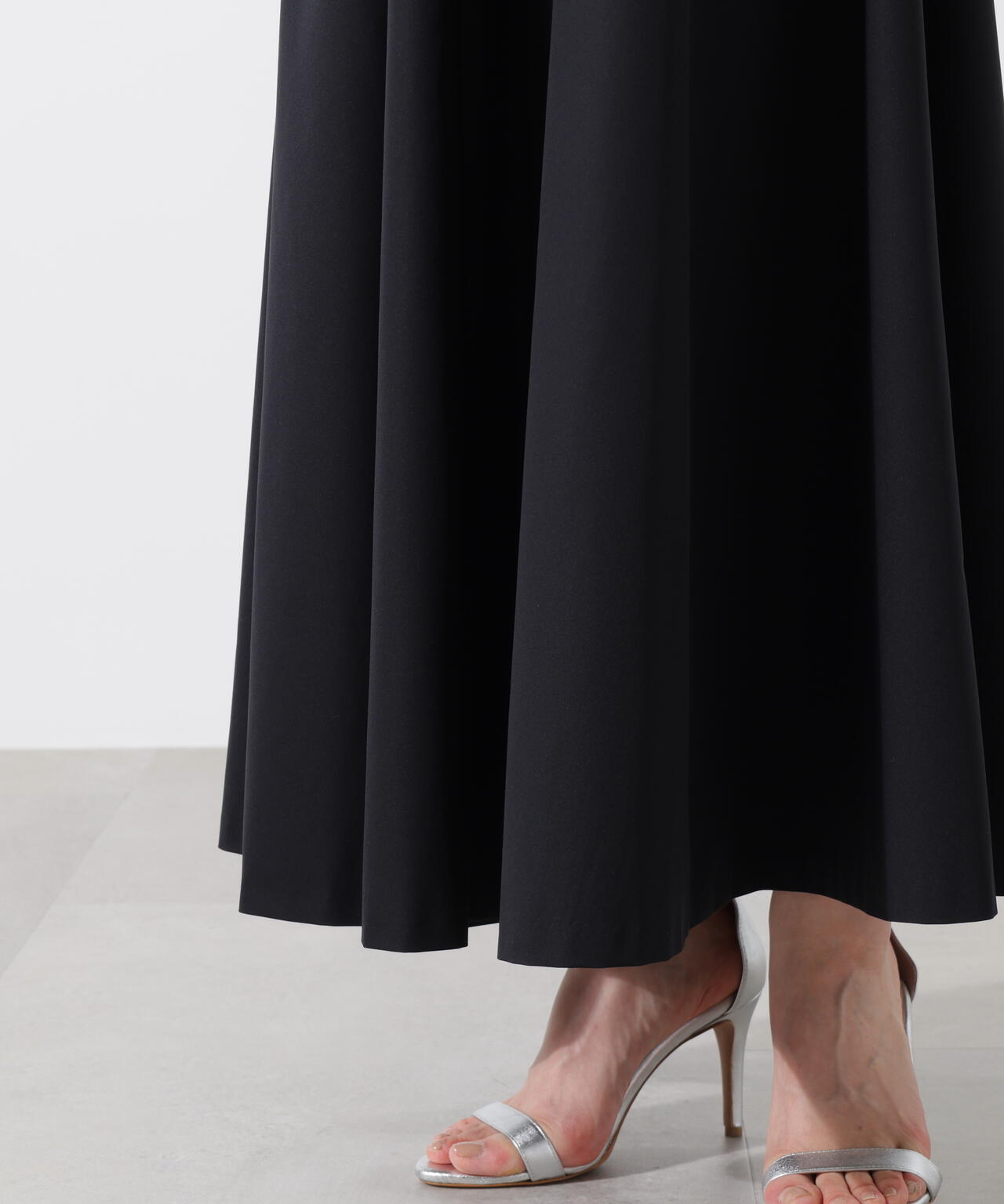 ウエストはすっきりとした細身のシルエットでスタイルアップ効果もあり、そこから緩やかに広がるラインが上品な印象を与える一着です。