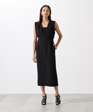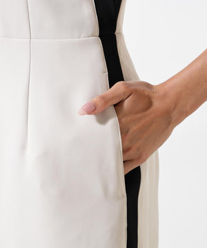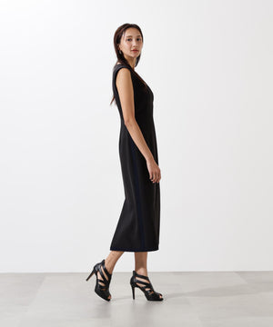 スッキリとしたIラインシルエットが魅力のジャンパースカート。深めのVネックがシャープな印象を演出し、ウエストの切り替えで女性らしいラインに仕上げています。袖からサイドへと続く配色切り替えが縦のラインを強調し、スタイルアップ効果も抜群。程よくスポーティーなディテールを取り入れながら、上品な素材感で大人のカジュアルレイヤードスタイルを楽しめる一着です。
