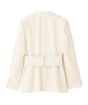ストレッチなし/総裏/肩パットあり/袖口本あき/後ベントあり/腰ポケット×2・左胸ポケット×1・内ポケット×2/ヒップが隠れる丈/ベルトはサイズ調整可
