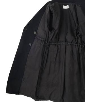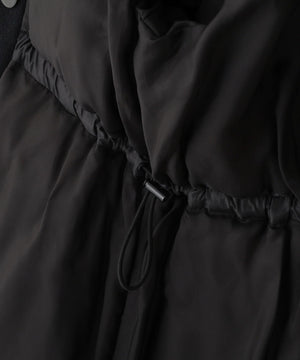襟から前立て部分、袖には上品なウールビーバーを使用し、すっきりとした表情に。前身頃のサイドから後ろ身頃にかけては軽量ダウンで切り替え、程よいカジュアル感と快適な着心地を実現しました。ウエストには内側にスピンドルをあしらい、サイズ調整が可能。メリハリのあるきちんと感を演出しつつ、自分好みのシルエットで着用できます。暖かさと軽さを兼ね備えつつ、華やかで洗練されたスタイリングが叶う、大人のためのコンビネーションコートです。