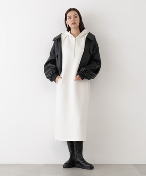 ゆったりとしたシルエットに、ネックラインの抜け感を演出するビッグカラーがモードな印象をプラスします。ジップやエポーレット、フラップポケットなど、ディテールにエッジを効かせながら、くるみボタンをあしらい、柔らかい表情を添えました。袖口と裾はゴム仕様で、ふんわりと立体感のあるフォルムに仕上げ、フェミニンなバランスをプラス。辛さと甘さを絶妙にミックスしたトレンド感のある一着です。