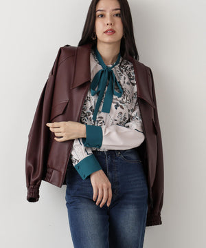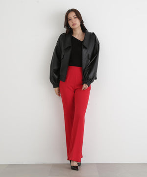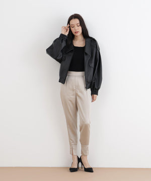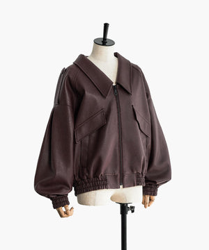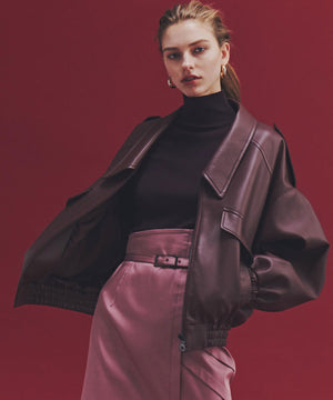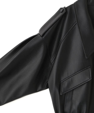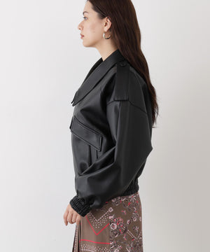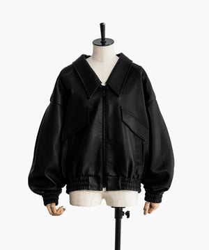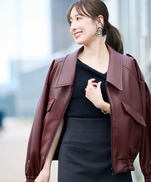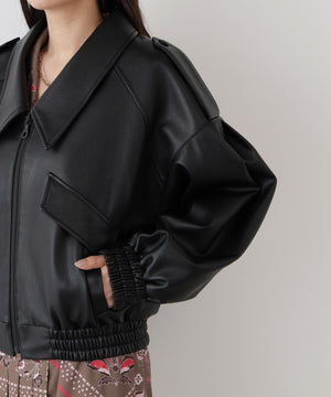 リアルレザーのような質感を持つフォーレザー素材を使用した、存在感のあるボリュームブルゾン。