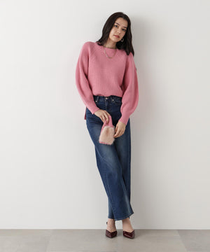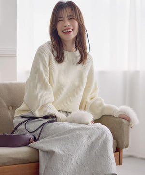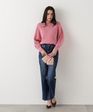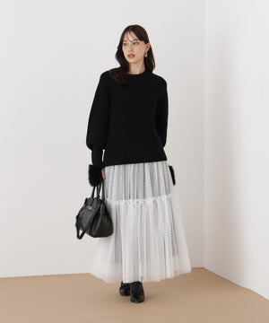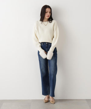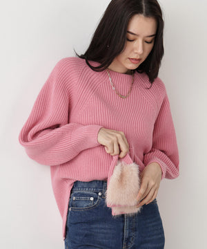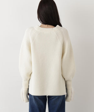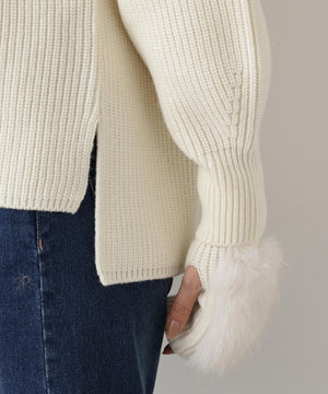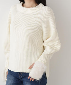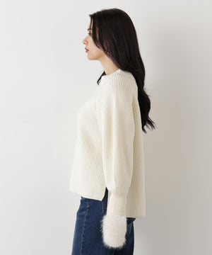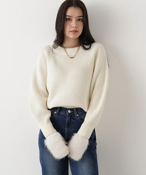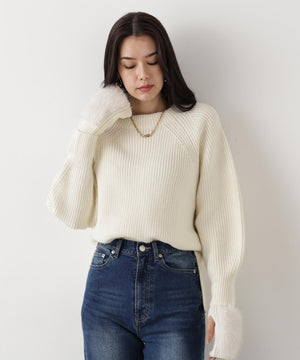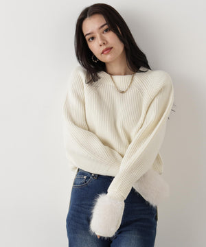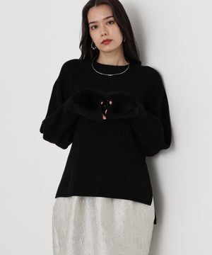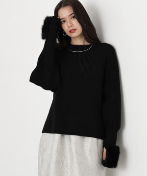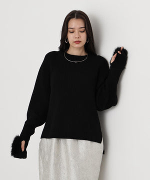 ファーグローブ付き畦ニットプルオーバー