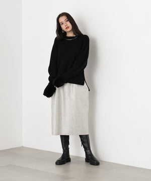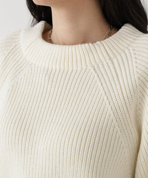 ふっくらとしたウール/アクリル素材のニットは、チクチクしない柔らかな肌触りが特長。ざっくりした編地の質感と、軽やかな着心地を楽しめます。