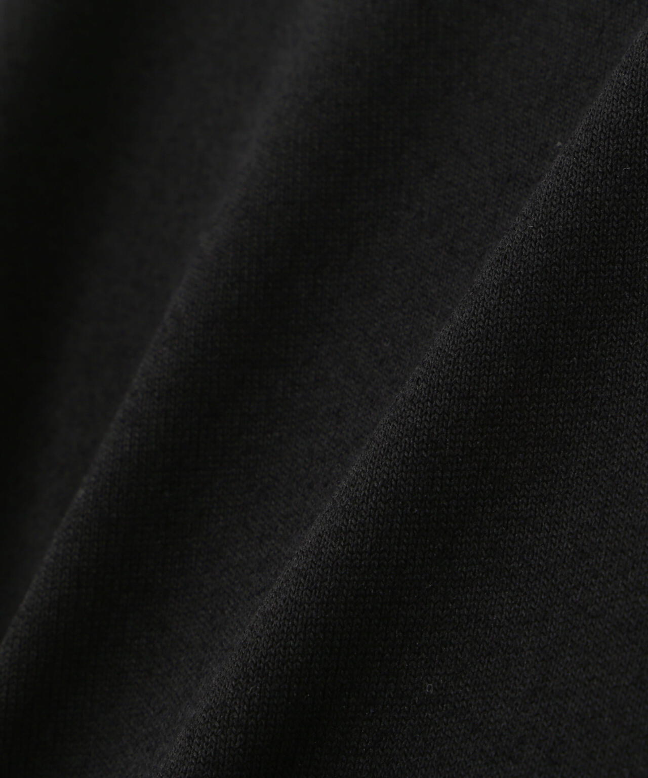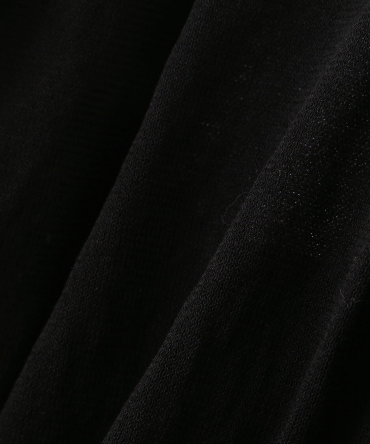 見頃部分・柔らかさが特徴のポリエステル/レーヨンをブレンドした新感覚ニット。やみつきになるその着心地の良さは、伸びがよく、毛玉になりにくい。暑さの残る時期にも嬉しいサラリとした肌触りです。裾部分・細く光沢感のある糸で透け感が特長のニット糸。