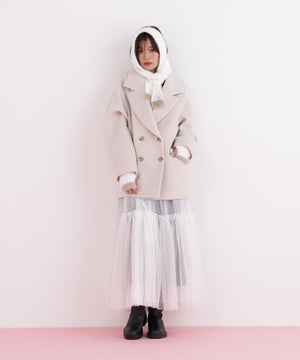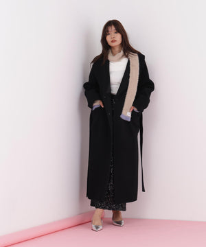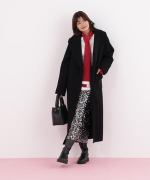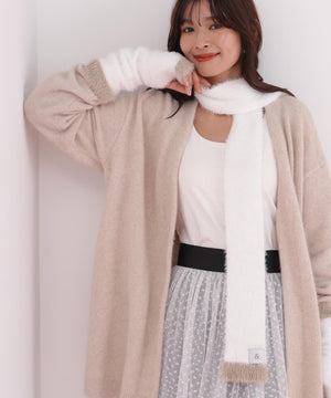 同素材の細マフラーと合わせれば、統一感のあるスタイリングが完成します。