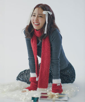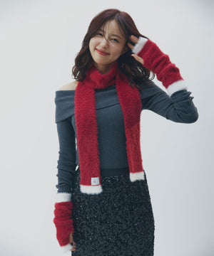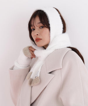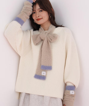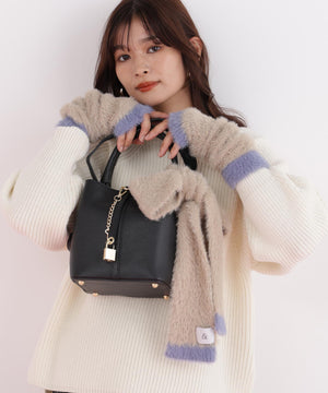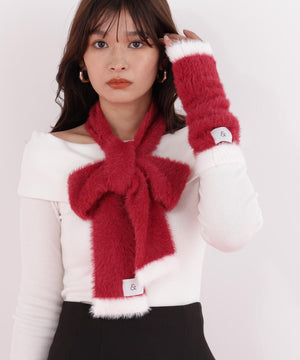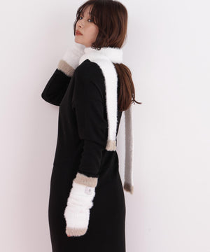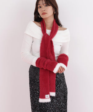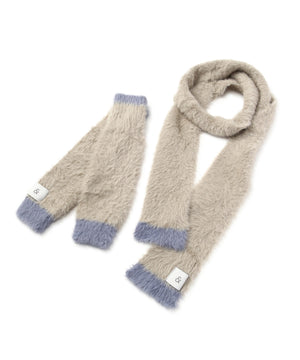 思わず触りたくなるふわもこ素材のマフラー&ハンドウォーマーセット。