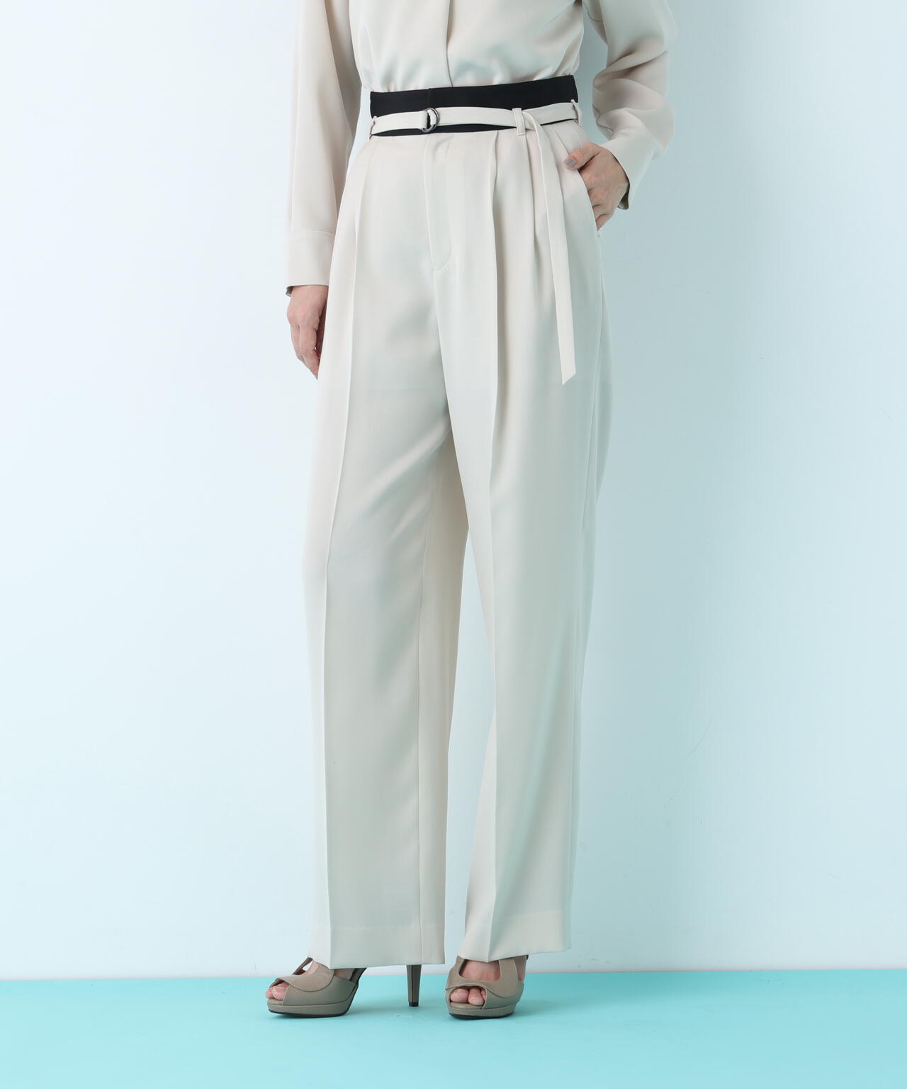 ダブルサテンタックワイドパンツ