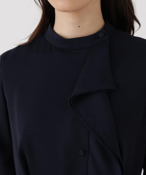 ポリエステル100%のドビー織り素材で、防シワ性、接触冷感、紫外線防止機能を持つ、なめらかな落ち感とやわらかな光沢が特徴です。シワになりにくく、洗濯機で洗えるウォッシャブル素材であるため、お手入れが簡単です。
