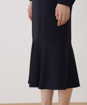 ストレッチなし/身頃・スカートに裏地付き/後ファスナー/ふくらはぎ真ん中くらいの丈