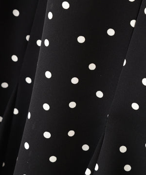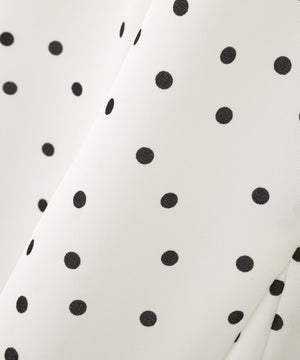 ハリ感と落ち感をほどよく備え、軽さと上品な光沢をあわせ持つ生地に、ランダムドットをプリントした素材。シルクのような艶やかな光沢ときしみ感が特徴です。