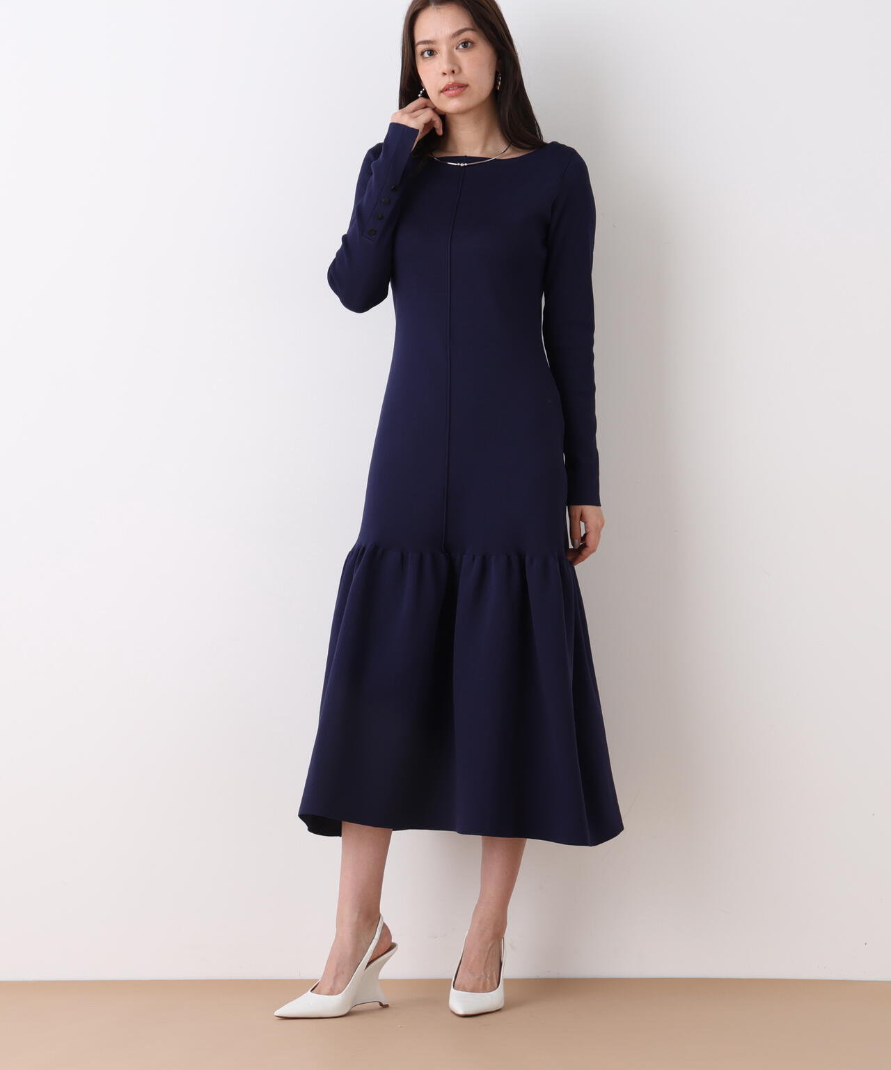 ボートネックマーメイドニットワンピース