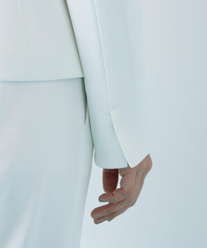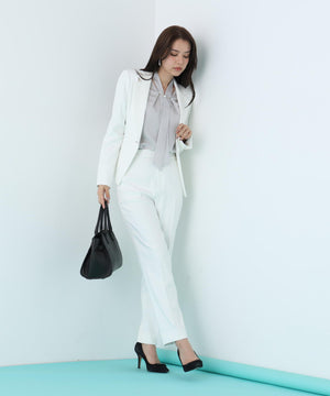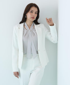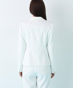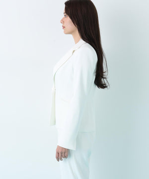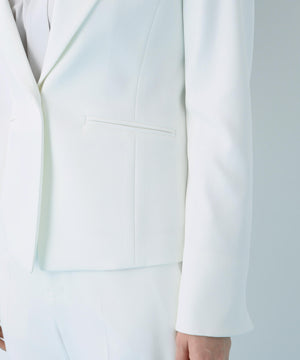 シンプルなデザインながら、襟ラインを少し細めにすることで、より洗練されたシックな雰囲気に。柔らかくストレッチ性に優れた生地感で、着心地の良さも良く。オンスタイルからオケージョンシーンまで、様々な装いの羽織りとして活躍するテーラードジャケットです。同素材のパンツやスカートと合わせてセットアップとしても着用頂けます。