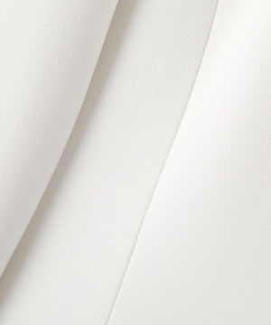 透け防止タイプのポリエステルを使用した二重織の2WAYストレッチ素材です。トリアセテート混にすることにより、光沢とドレープ感が加わり、ハリ感のあるスマートな素材でありながらもソフトで着心地の良い素材となっております。