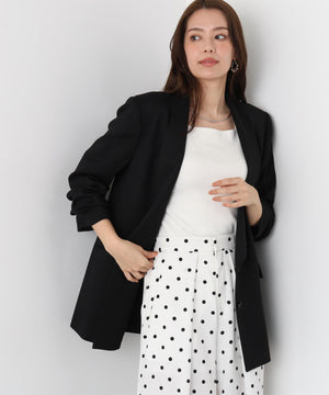 ストレッチなし/背裏付き/前釦あき/袖ギャザー寄せ/ポケット×2/肩パットあり