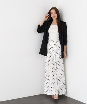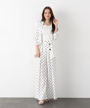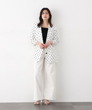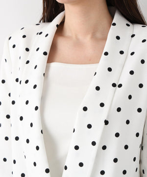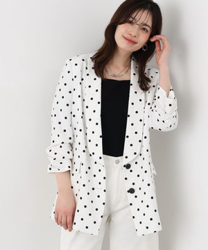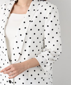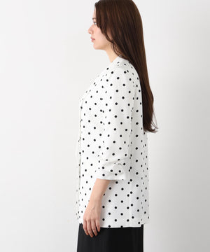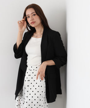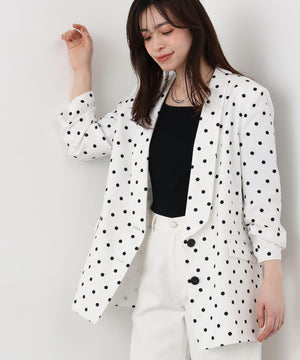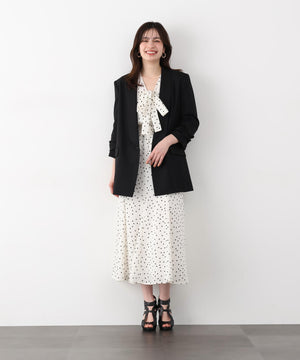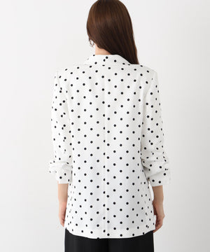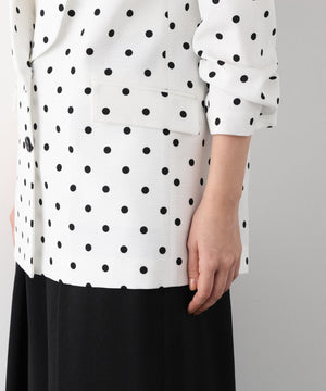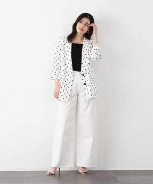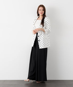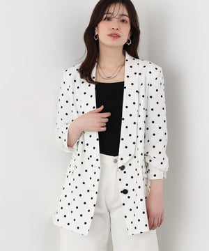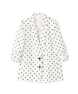 袖口はたくし上げたような立体感のあるデザインで、袖丈をやや短めに設定することで軽さをプラス。シングル合わせのロング丈は、さらっと羽織るだけでこなれたムードをつくります。フェミニンで華やかなランダムドットプリントと、ベーシックでシャープなブラックの2色展開。オンにもオフにも活躍する、汎用性の高い一枚です。