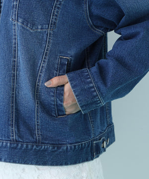 厚すぎず程よい肉感で、軽やかに羽織れるデニム素材を使用。ストレッチ性があり、動きやすく快適な着心地が魅力の素材です。
