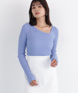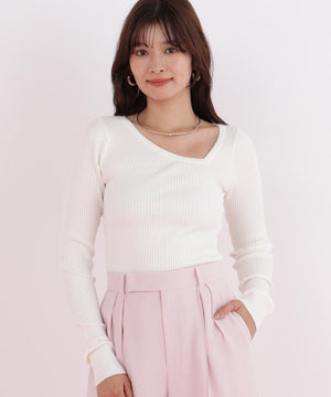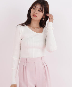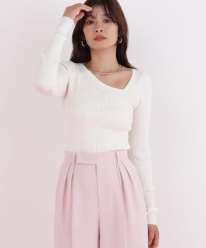 アシンメトリーネックニットプルオーバー