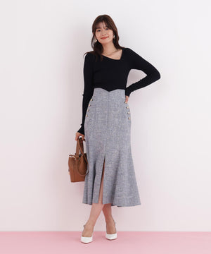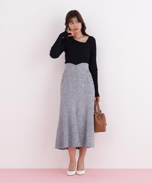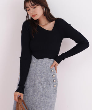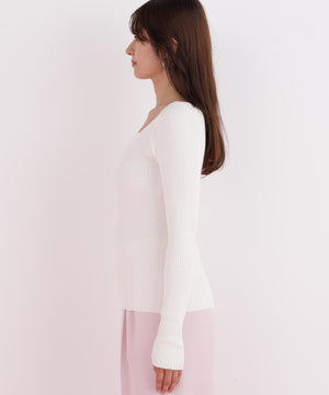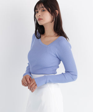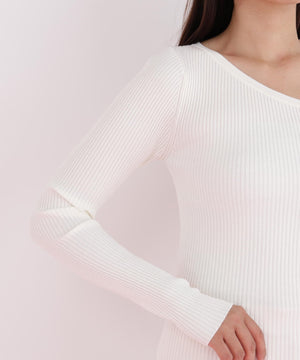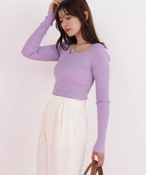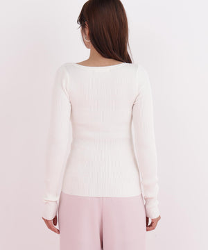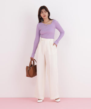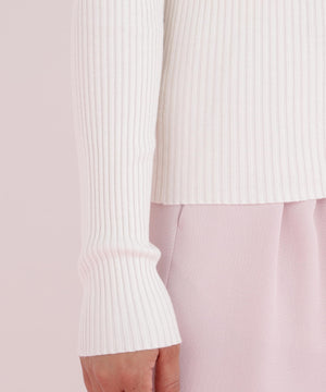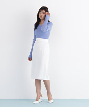程よい厚みと伸縮性のあるリブ素材が、ボディラインに優しくフィットし、美しいシルエットを演出します。