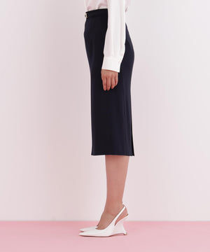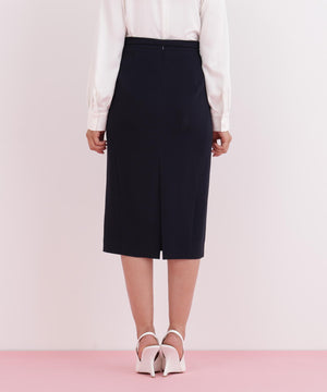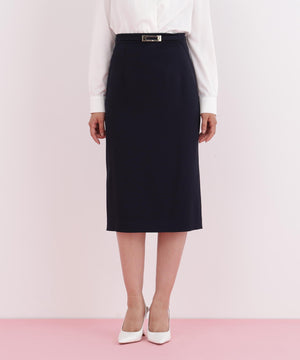 トリアセ混で、上品なハリ感のある素材を使ったスカートです。無駄なデザインをそぎ落とし、すっきりとしたシルエットにこだわった、PINKY&DIANNE定番のタイトスカートです。バックベンツで、座ったときも肌見えが気になりません。今期はダーツ横から流れるように施した切り替えが、美しい縦ラインを印象付けるデザインにアップデートをしています。共生地のベルトも付いているので、ウエストの調整ができるのも嬉しいポイントです。