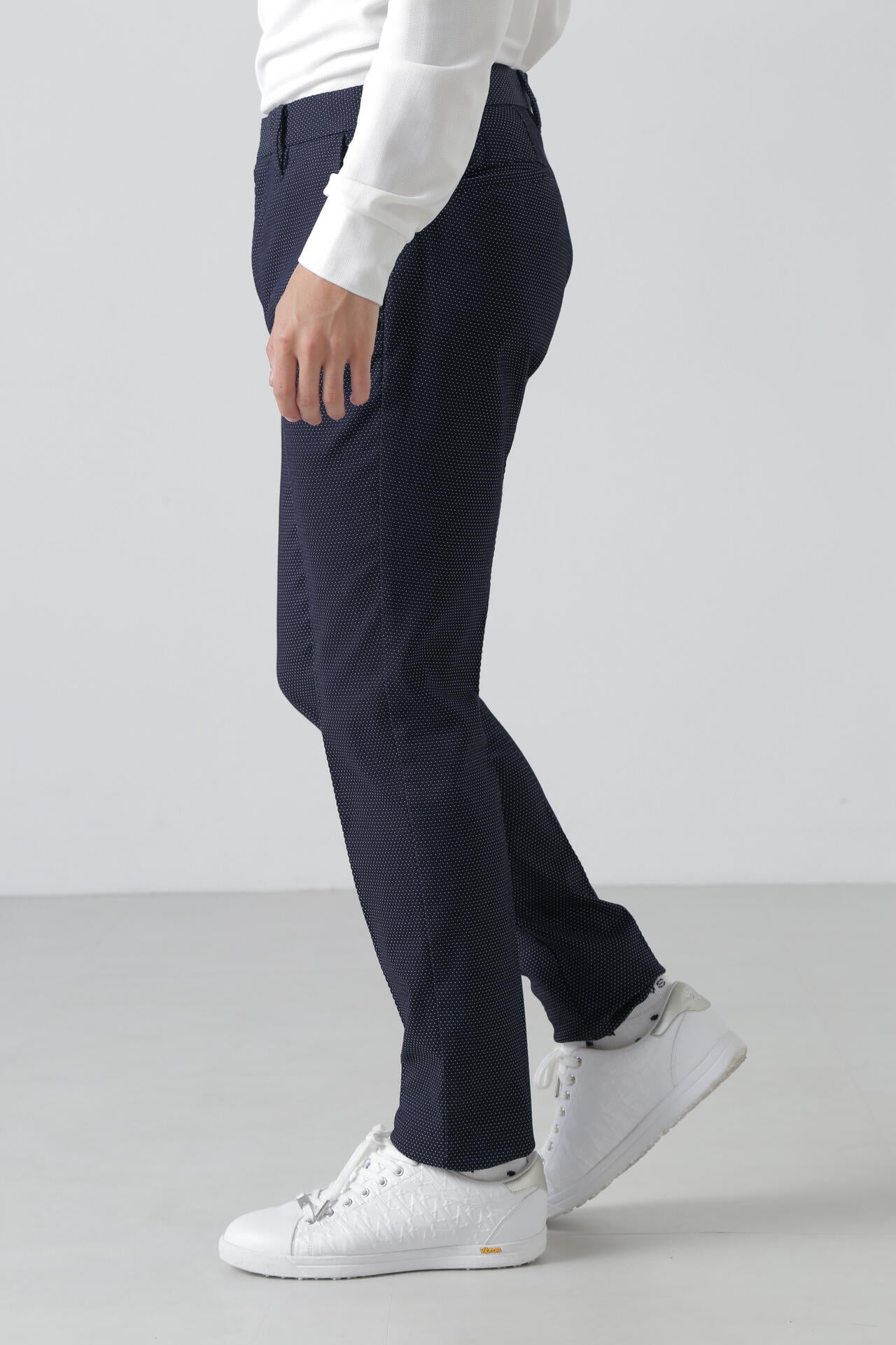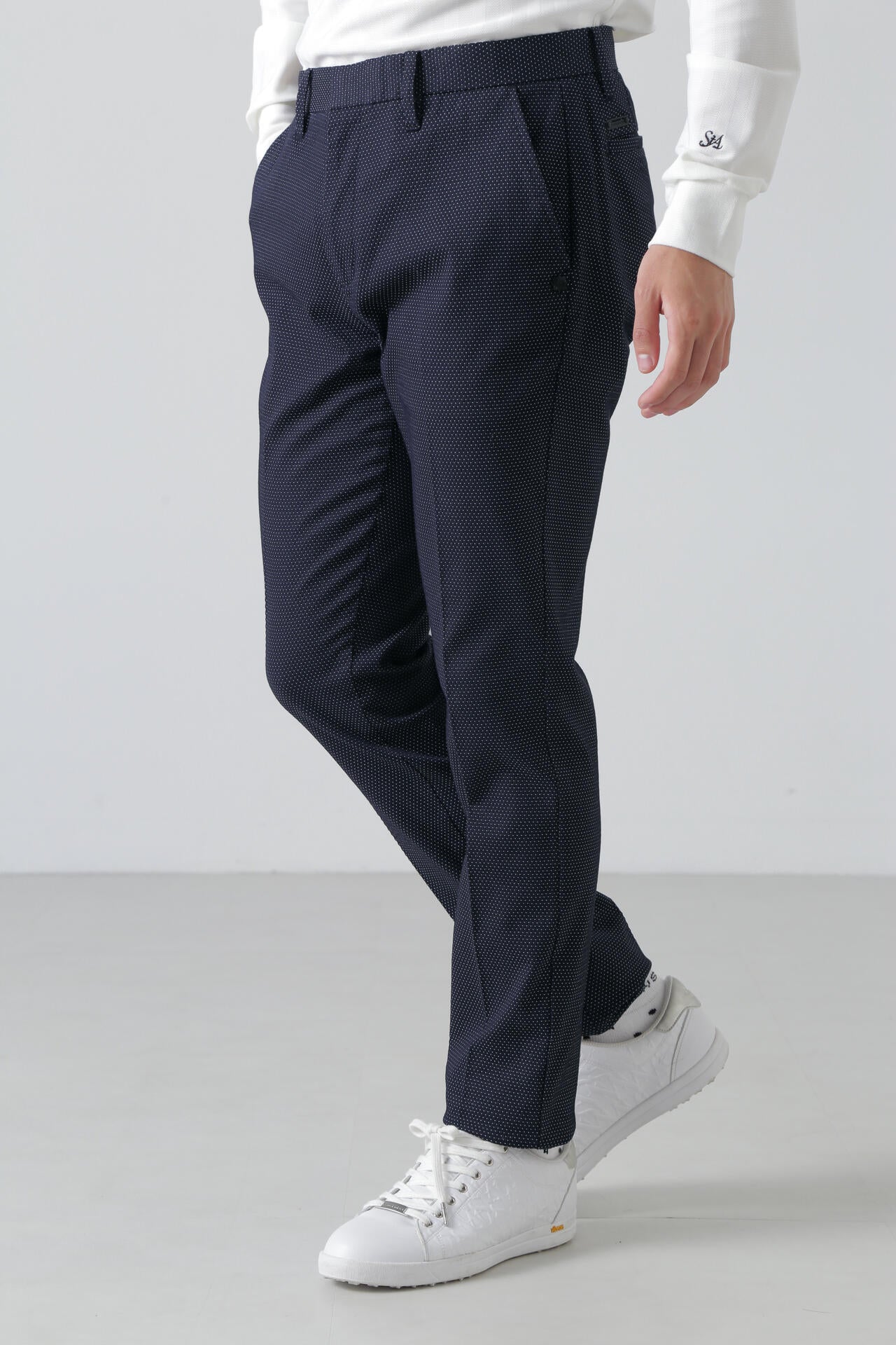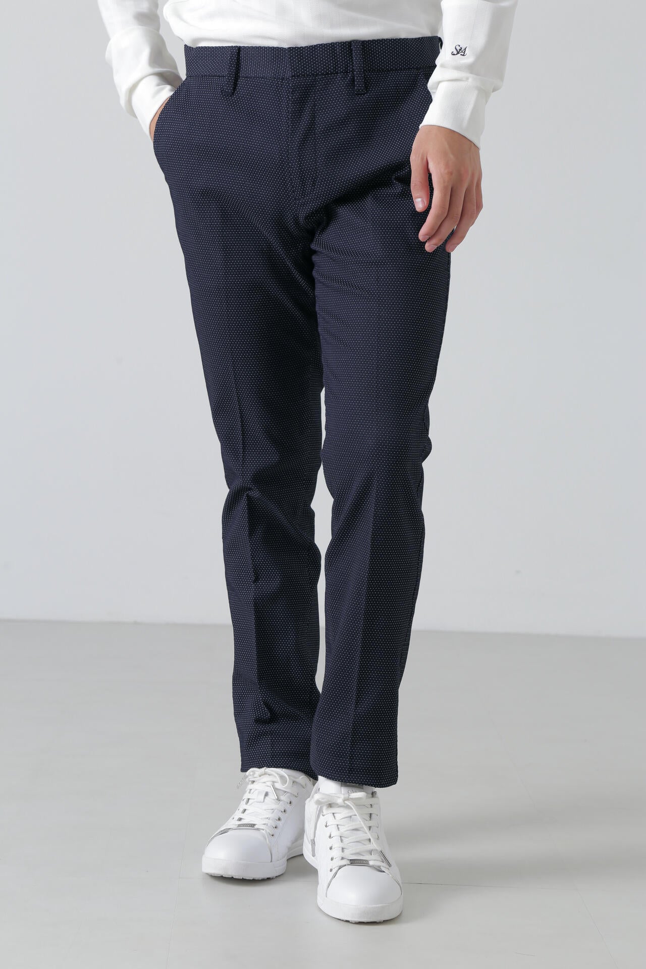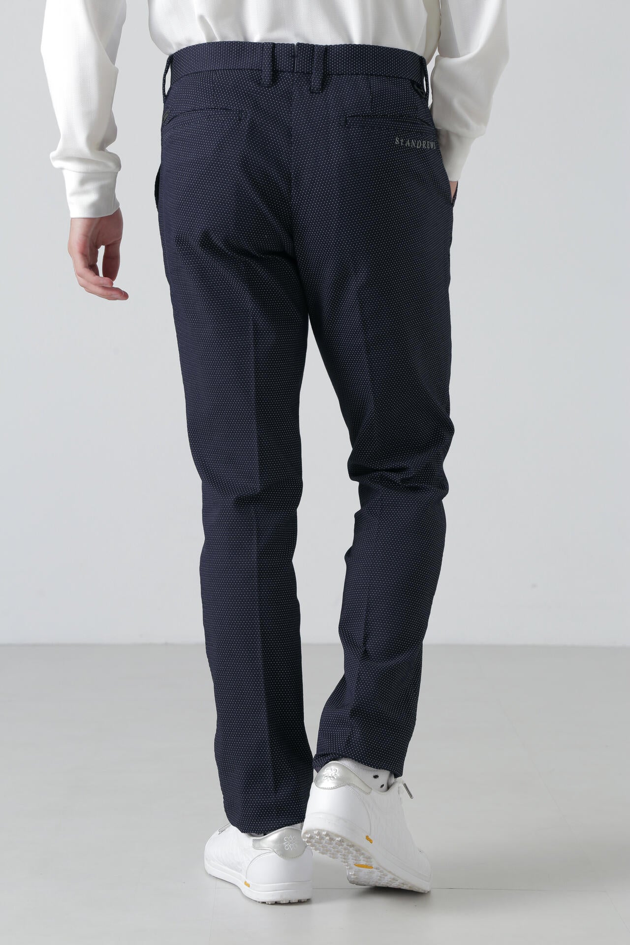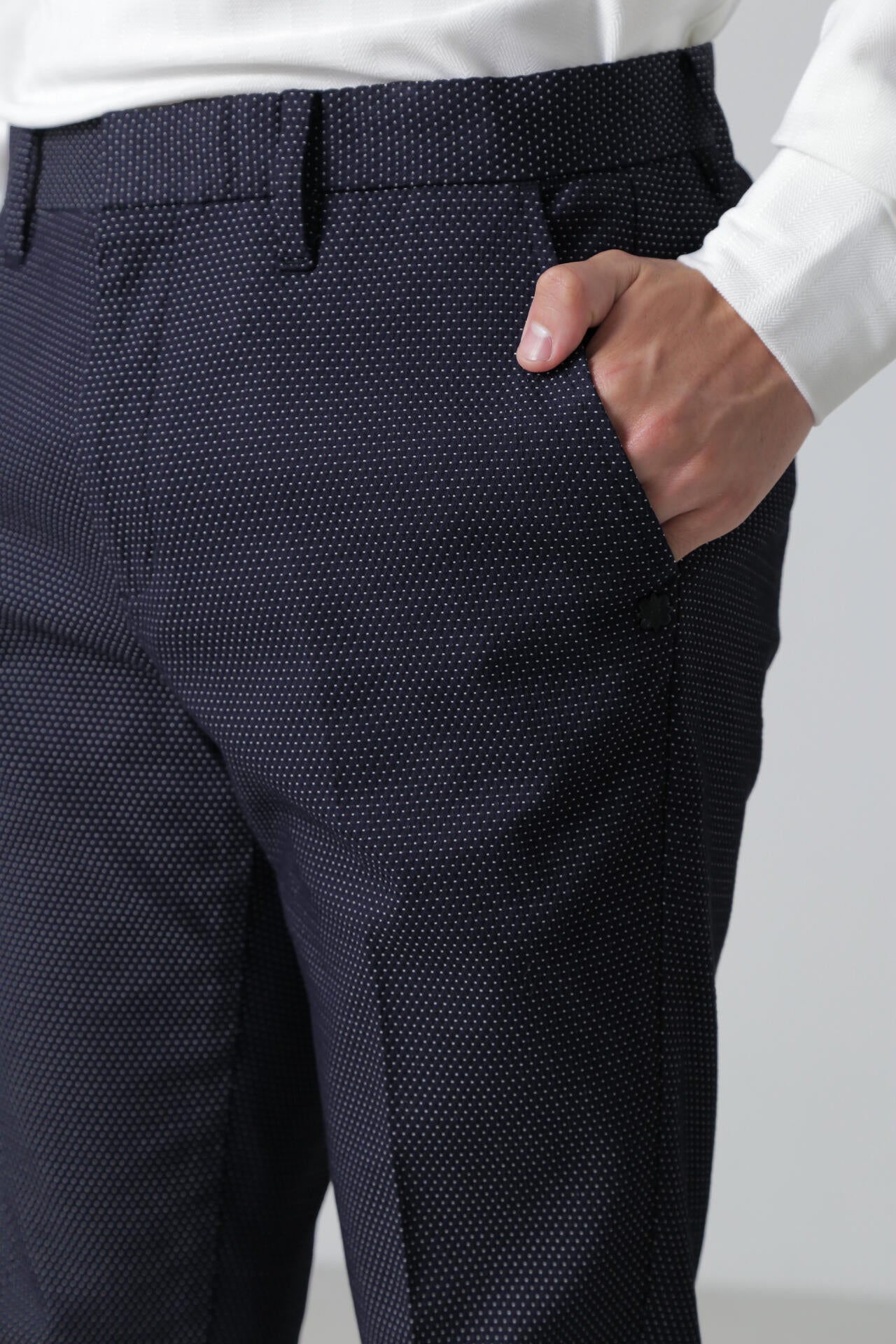 組織感のある表情にこだわった、ドットドビーストレッチパンツ。体にフィットしてアクティブにも対応するハイストレッチ性とキックバック性に優れ、高い伸長回復率があるPOWERFUL COTTON STRETCHを使用。同素材でご用意のあるジャケットとの、セットアップコーデもオススメです。