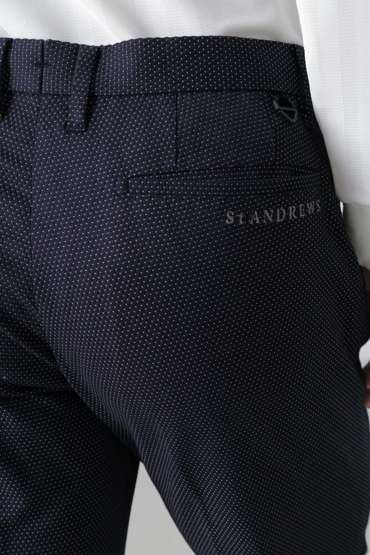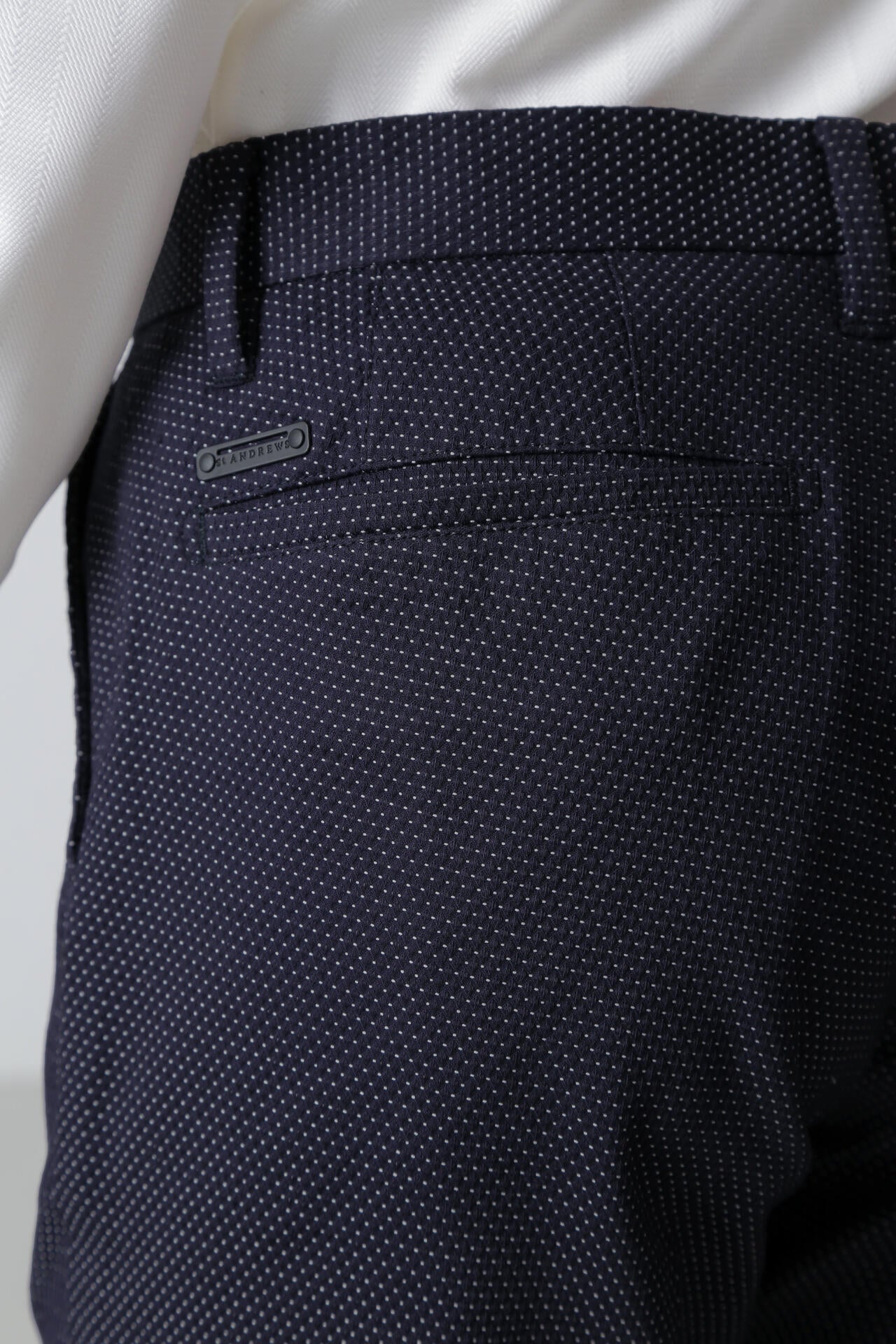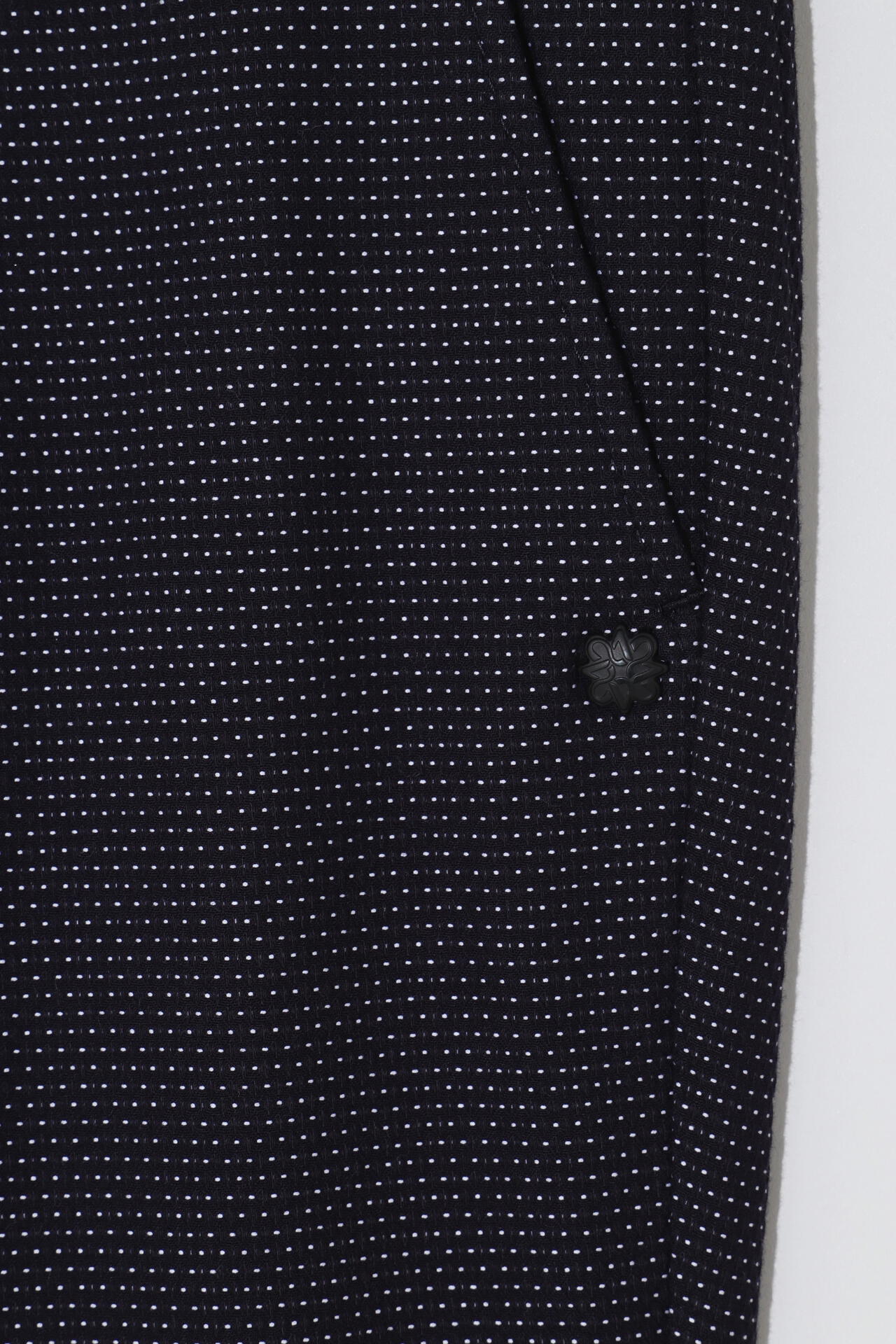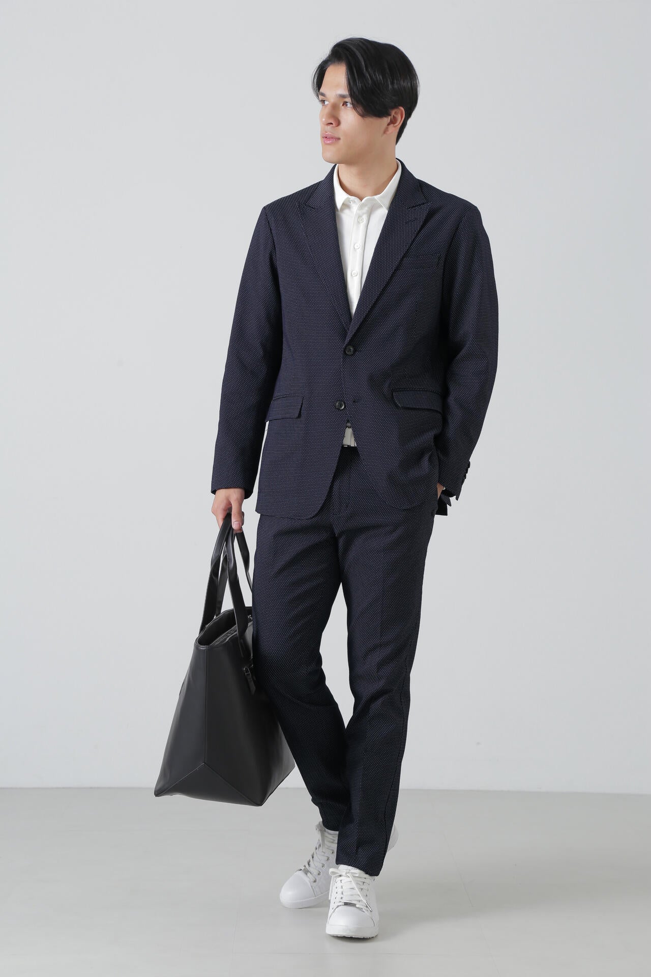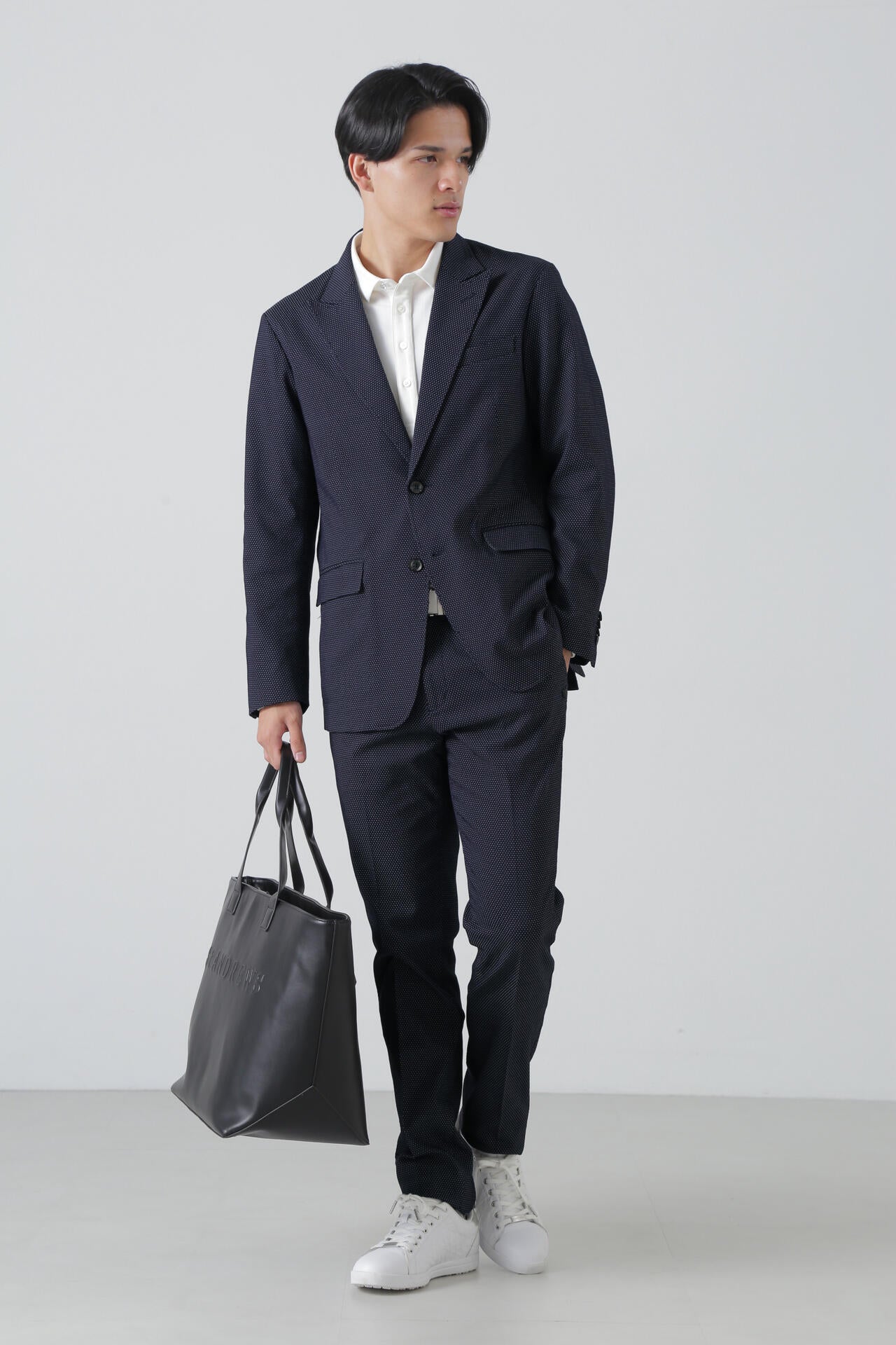 組織感のある表情にこだわった、ドットドビーストレッチパンツ。体にフィットしてアクティブにも対応するハイストレッチ性とキックバック性に優れ、高い伸長回復率があるPOWERFUL COTTON STRETCHを使用。同素材でご用意のあるジャケットとの、セットアップコーデもオススメです。