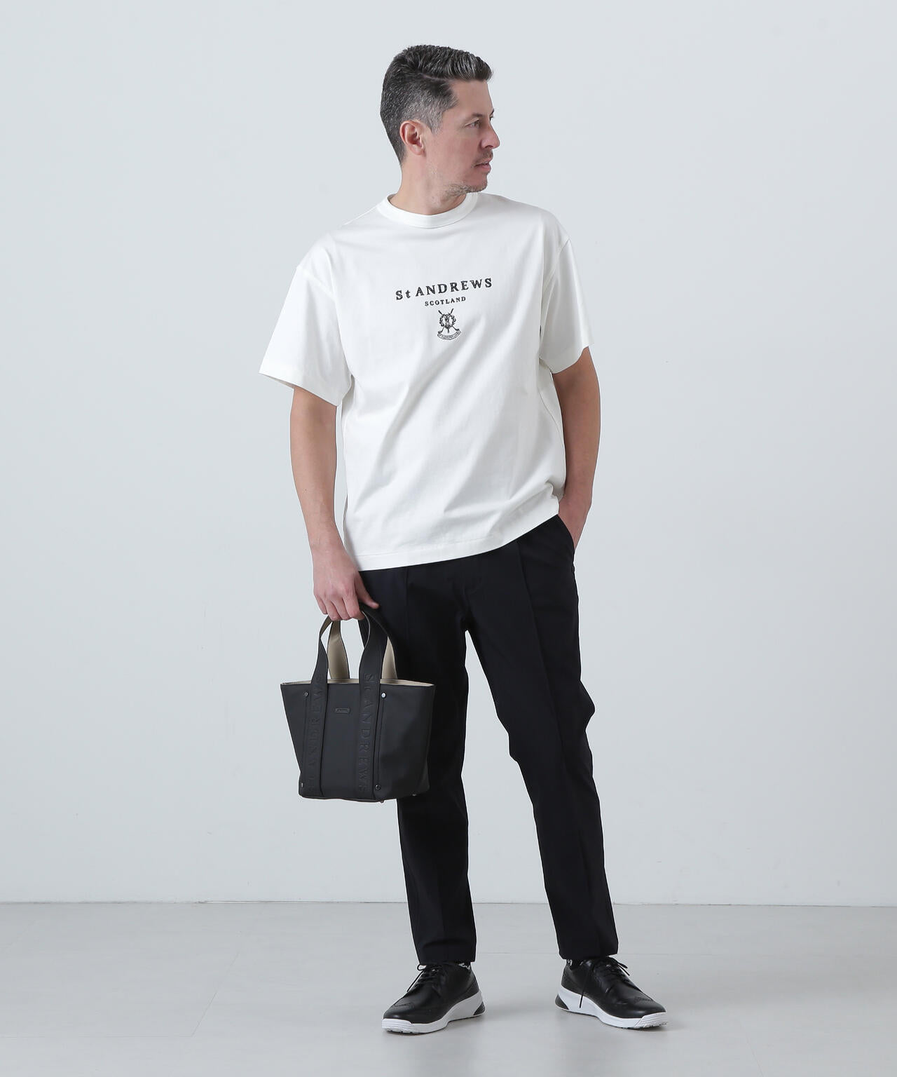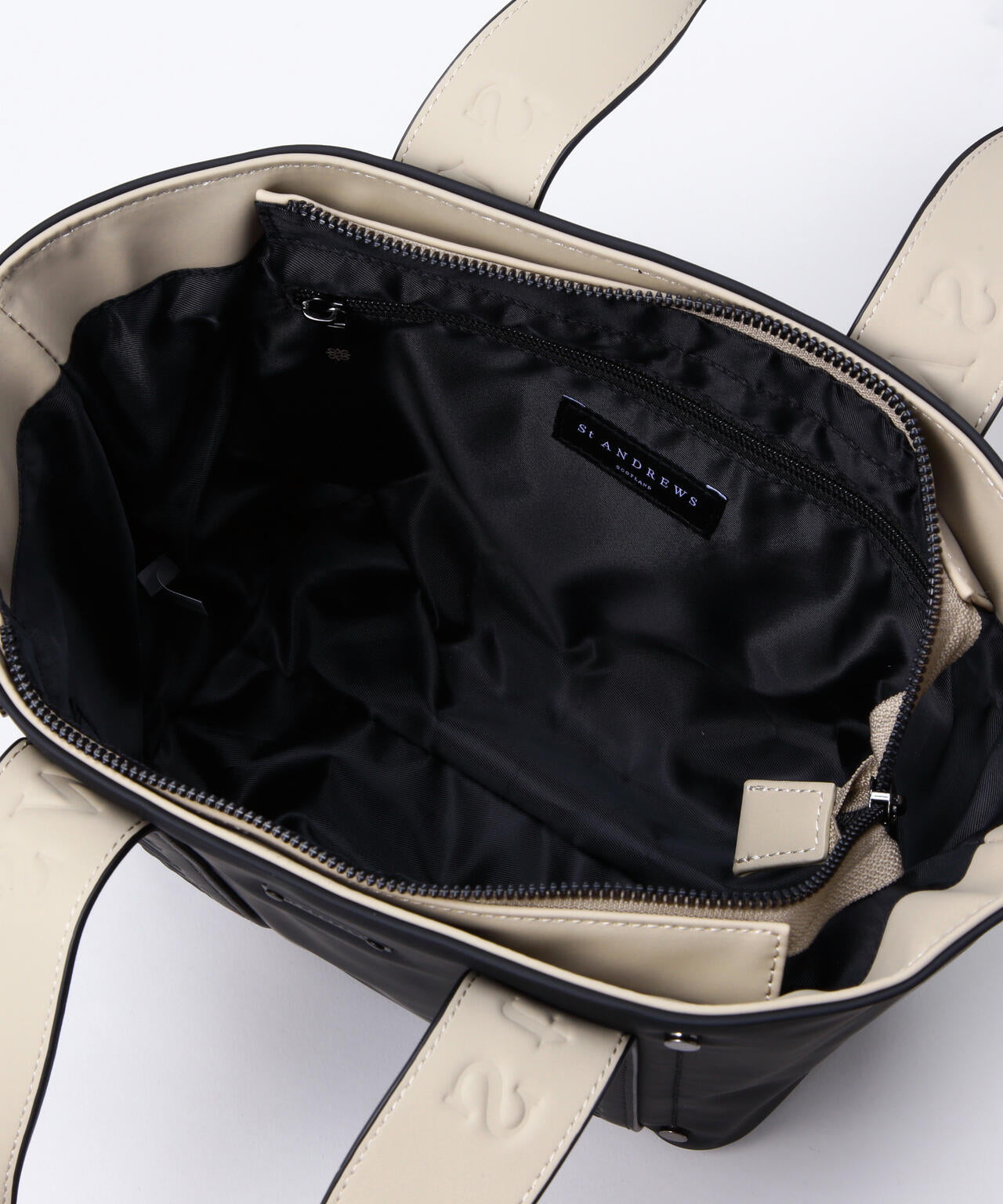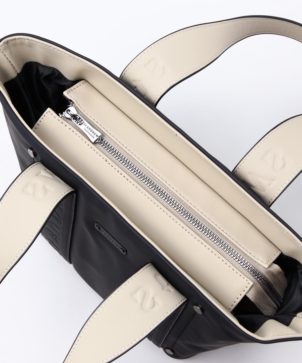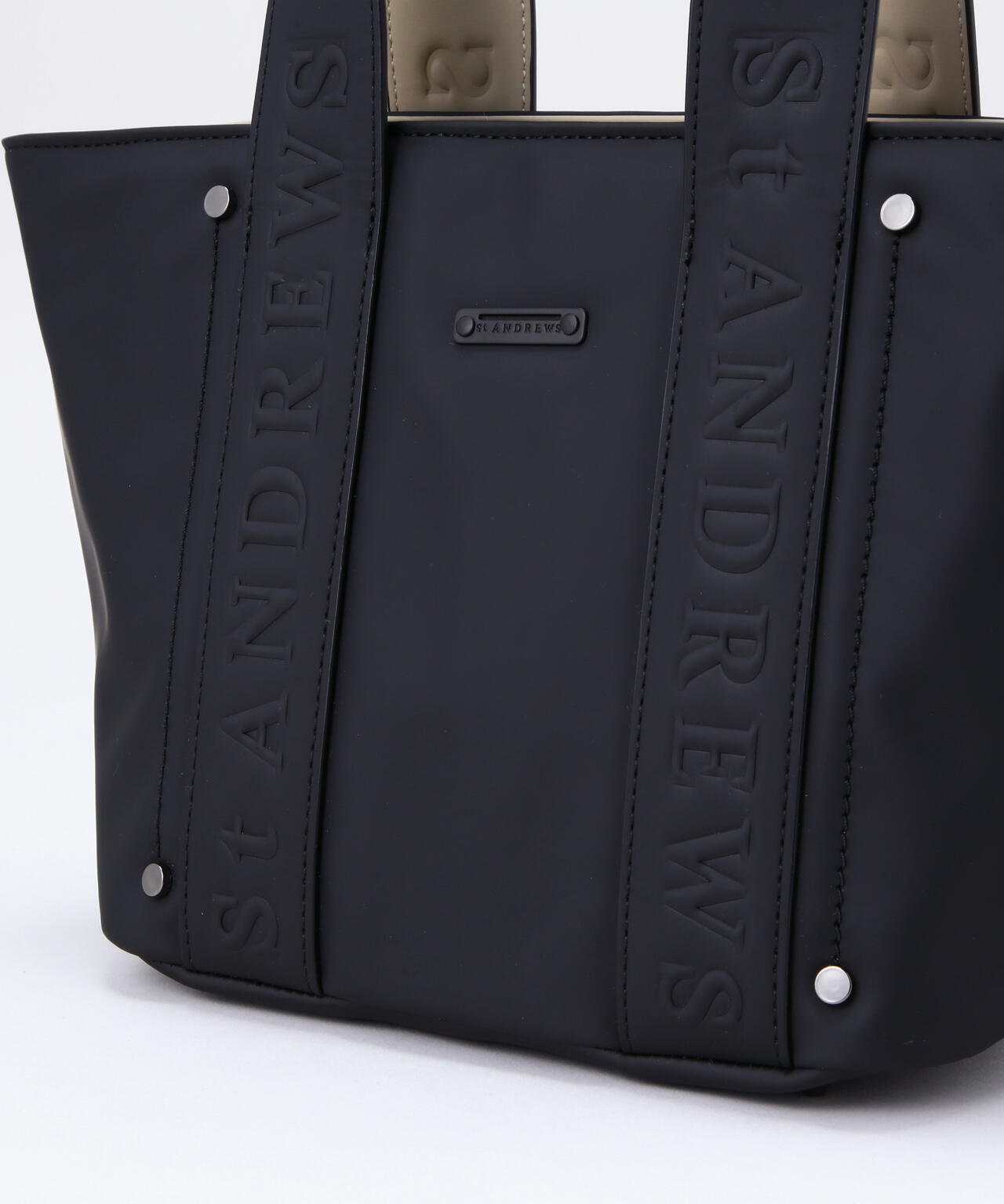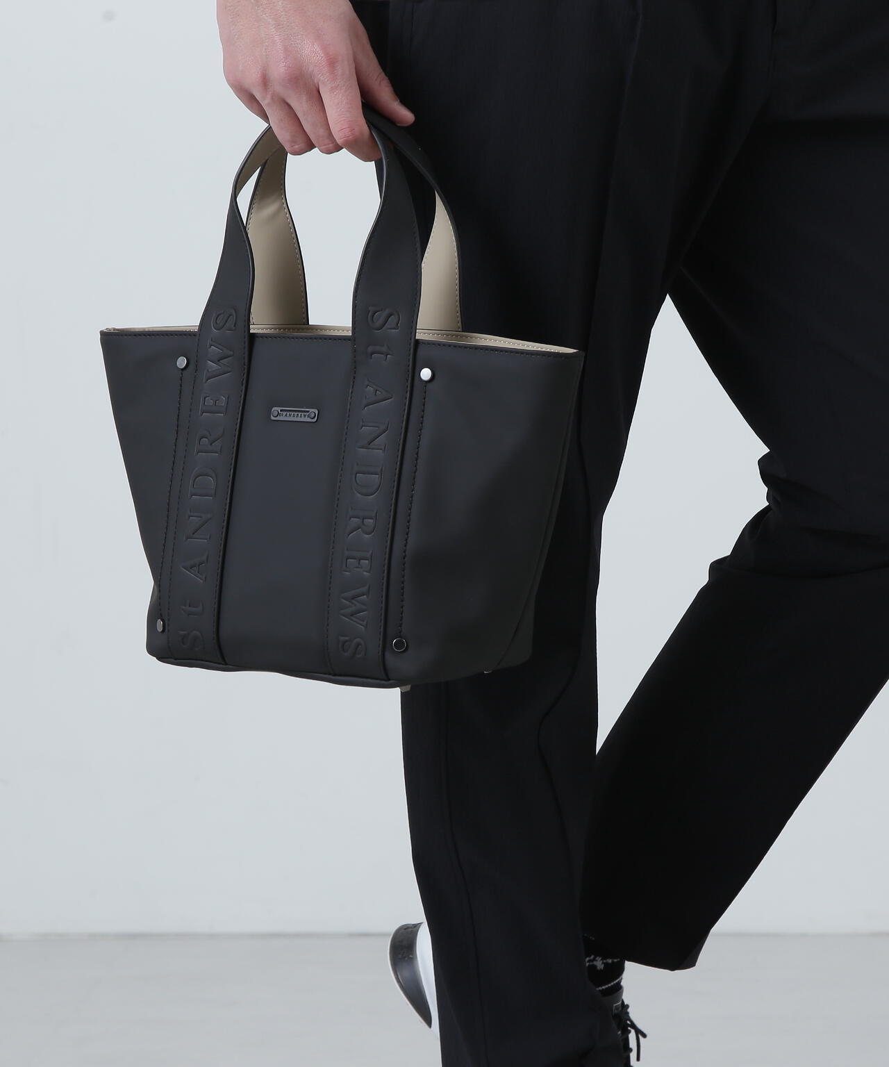 主張し過ぎないSTAロゴをハンドルに入れた、合皮エンボスカートバッグ。