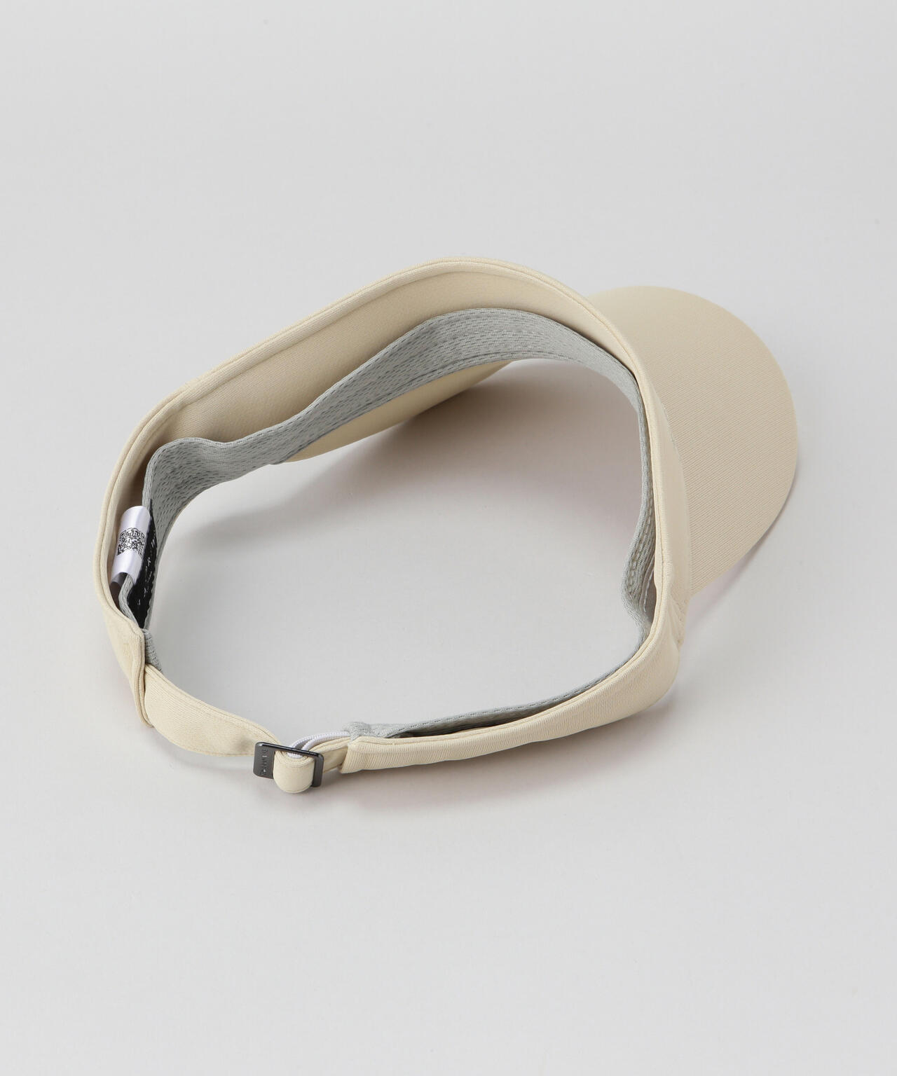 。ほのかに光沢するタフなポリエステルを使用した、酷暑にも対応するUVカット性と吸汗速乾性に優れたサラッとした軽やかな風合いが特徴のバイザーです。