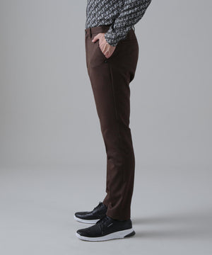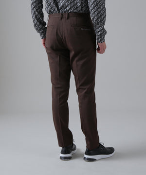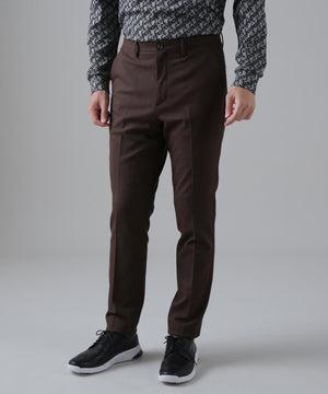 ヴァージンウールの混紡糸にストレッチ性を持たせ、動き やすくストレスフリーのはき心地の良い素材です。