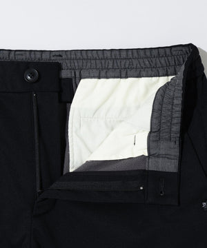 ポリエステルスムースに薄手の防風膜を貼り、薄手の起毛素材をボンディング加工で貼り合わせたストレッチパンツです。