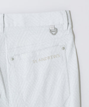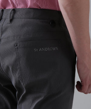 ツイル組織をベースに変則ダイヤ柄と St ANDREWS のロゴ柄を表現した、表面感のあるストレッチジャガードのレギュラーストレッチパンツです。