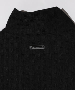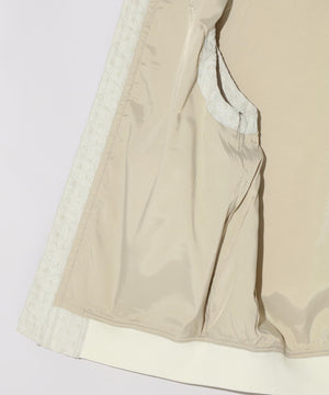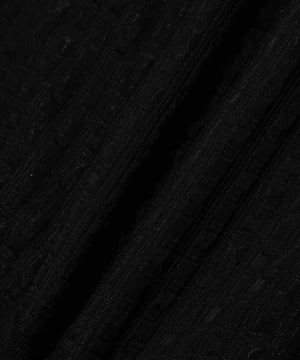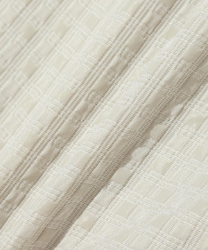 タテに光沢のあるブライト糸とヨコにウーリー糸を使い、光沢のスクエア部分とマットな部分を交互に並ぶように柄を組んた、国内桐生産地の高品質なジャガード素材を使用。