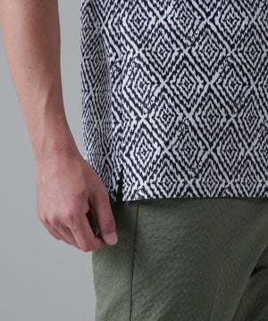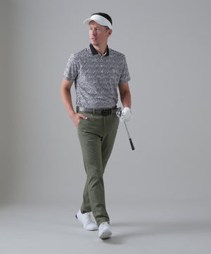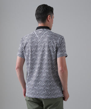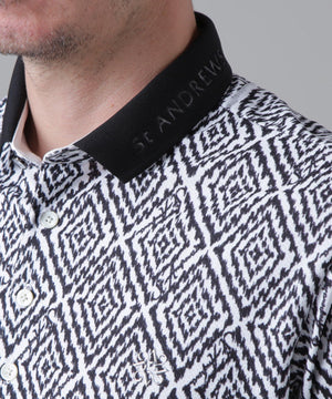 ベースに変則ダイヤ柄とSt ANDREWS のロゴ柄を表現した、SPXダイヤプリント半袖ポロシャツ。
