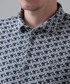 バイヤス状に SA ロゴを総柄で表現した、SAロゴドットジャガード半袖シャツ。
