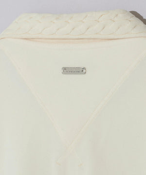パイル独特なウオーム感のある素材感と、シーズンムードのある温かなケーブルの編地が華やかでおしゃれな雰囲気を演出。