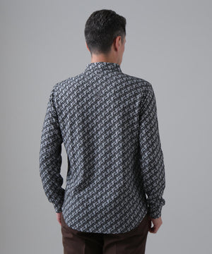シックなカラーとエアリー感な表面立体感が特徴の、SAロゴふくれジャガード長袖シャツ。